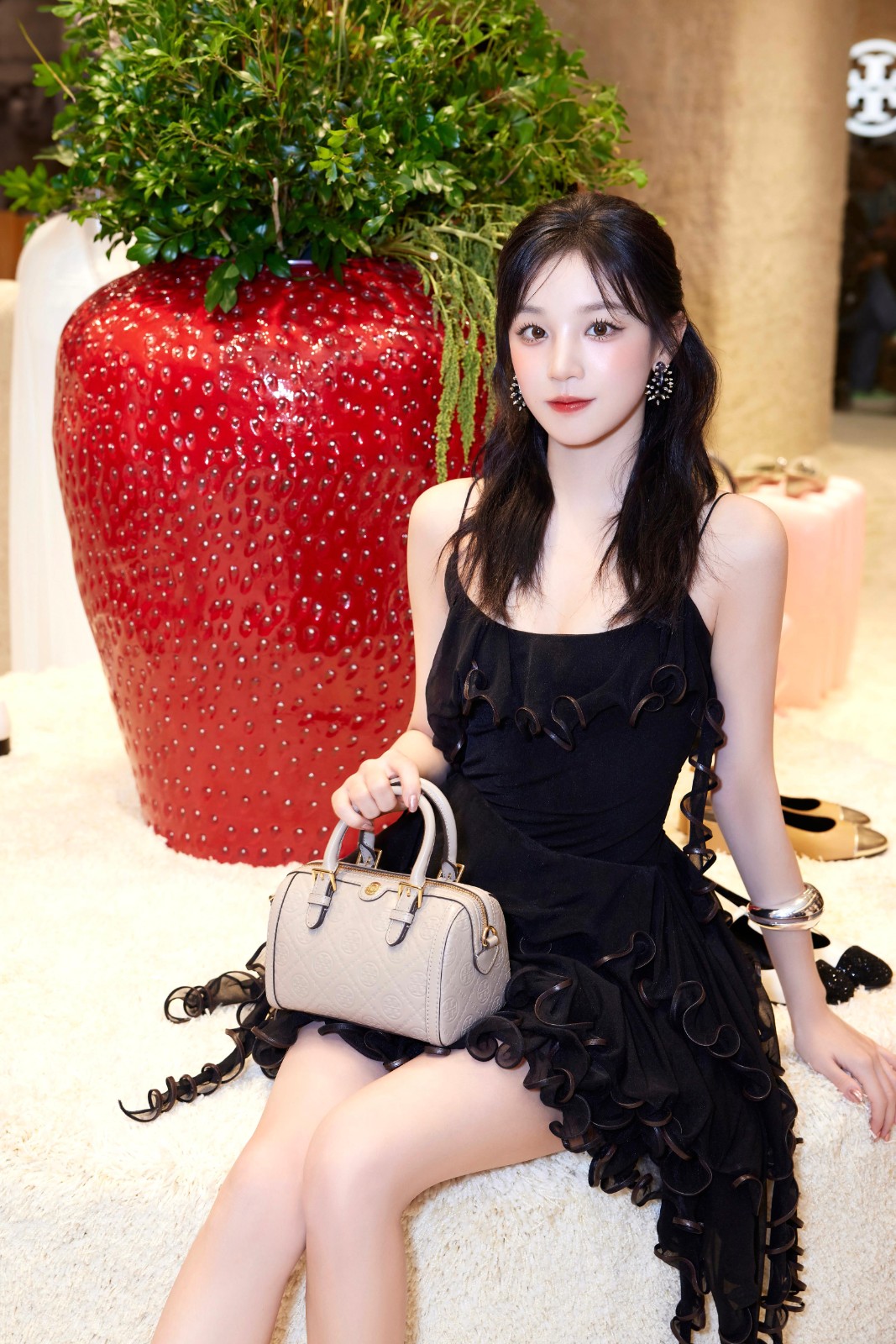 出席開幕活動的嘉賓包括韓國女團 (G)I-dle 成員宋雨琦,身穿黑色層次感連衣裙搭配品牌經典手袋。