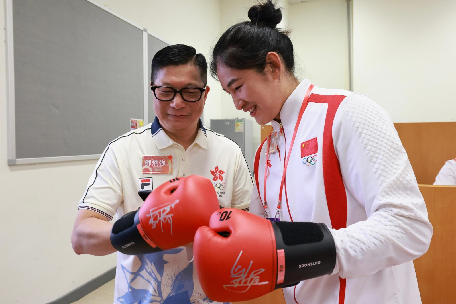 內地奧運健兒代表團今日(30日)在港展開第二行程,分別到訪消防及救護學院、體院及聖保羅書院。保安局局長鄧炳強今午在社交平台發文表示,他同各位運動員交流,覺得他們在賽場上英姿颯爽,場下個個都純樸可愛,同大家示範交流時又親民投入。他感謝國家安排是次機會,讓紀律部隊青少年與國家奧運健兒近距離交流。