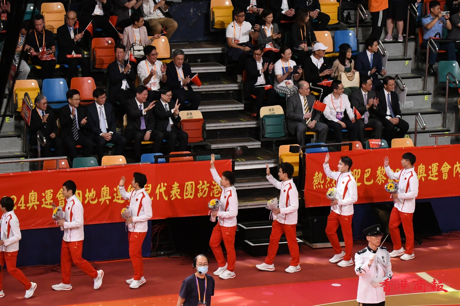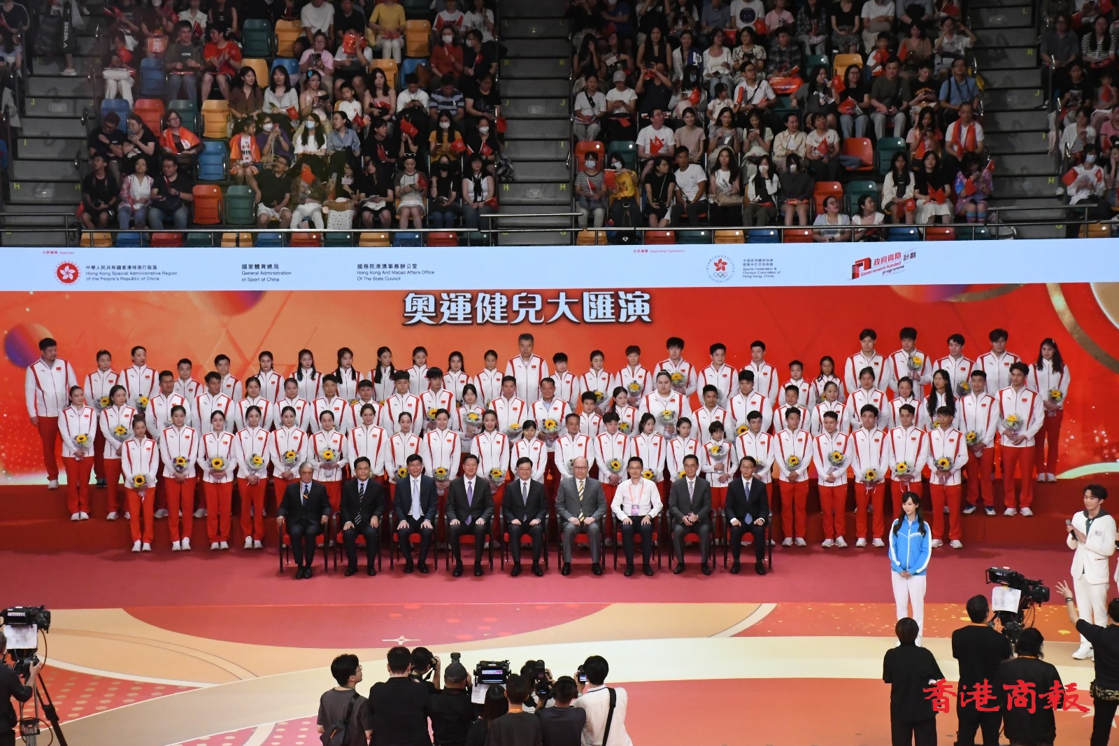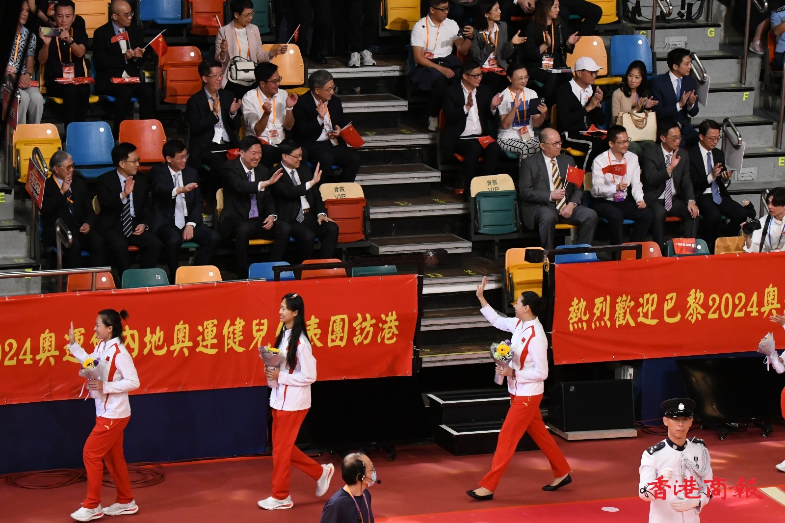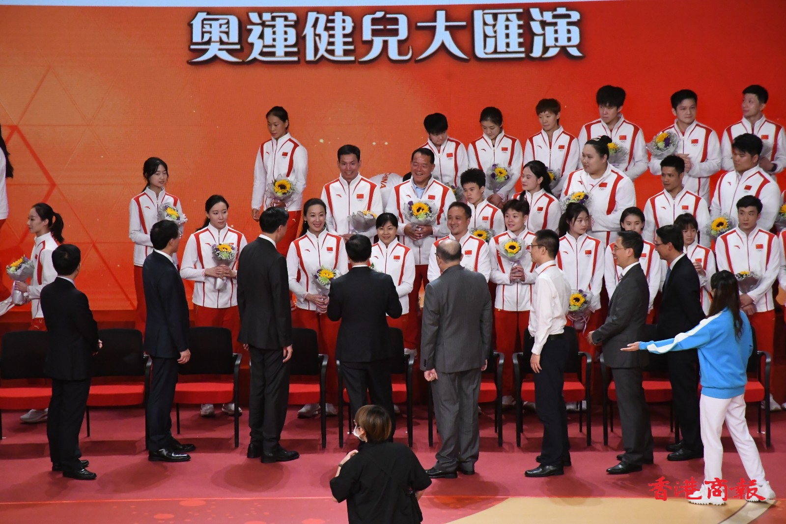 2024年巴黎奧運國家隊代表團,目前正在香港遊覽,今晚(30日)到灣仔伊利沙伯體育館參與大匯演,多名金牌得主出席,全場座位爆滿,大匯演全長1個半小時。(馮瀚文攝)