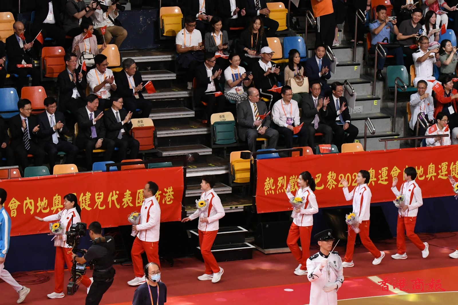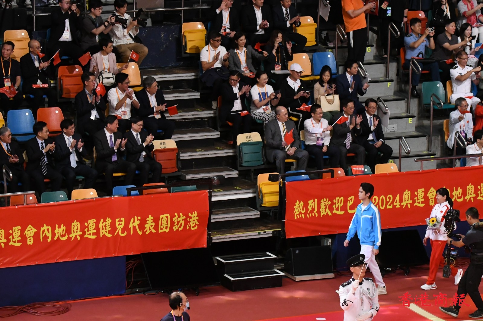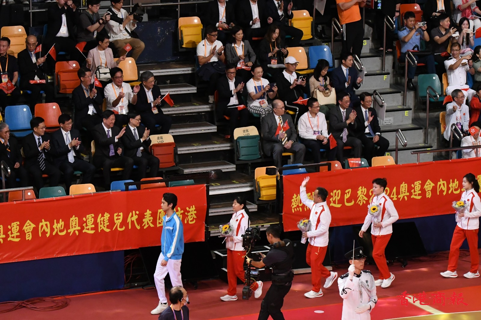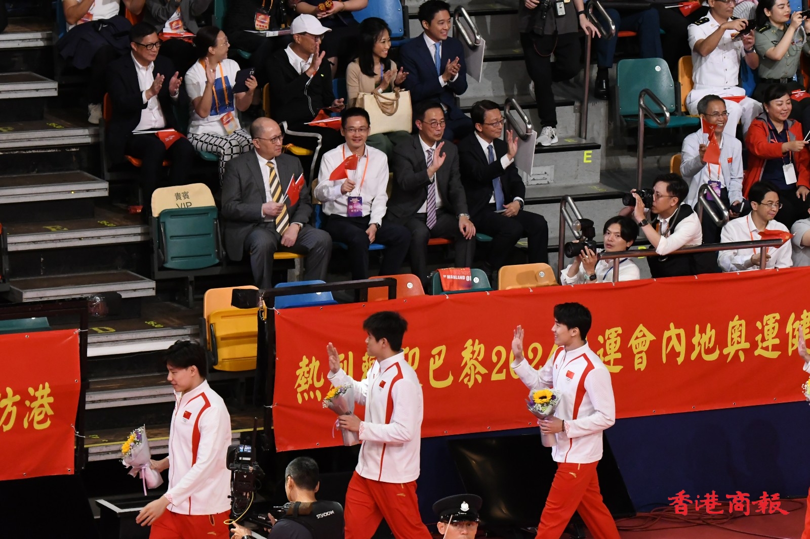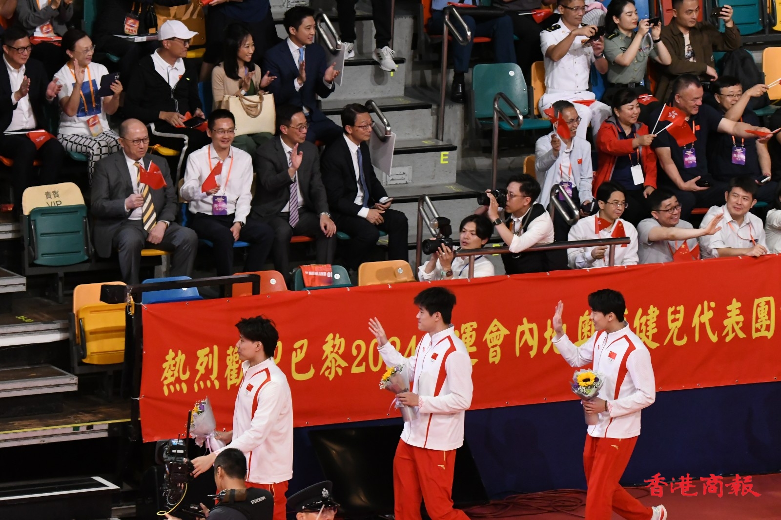 2024年巴黎奧運國家隊代表團,目前正在香港遊覽,今晚(30日)到灣仔伊利沙伯體育館參與大匯演,多名金牌得主出席,全場座位爆滿,大匯演全長1個半小時。(馮瀚文攝)