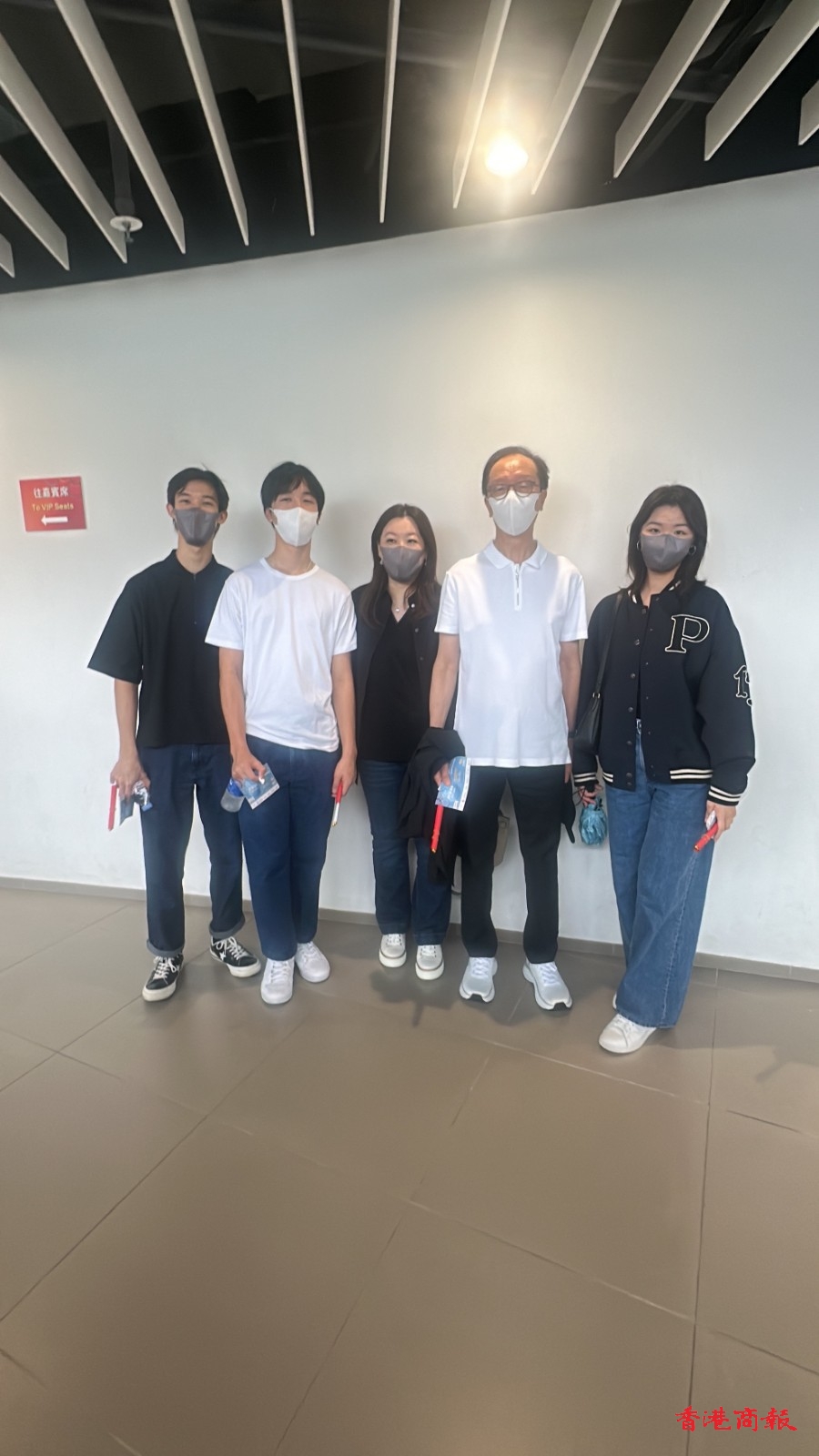 港商記者在現場看到,「跳水皇后」伏明霞和老公梁錦松一家五口一起來看表演,並在現場合照。全紅嬋今日出現在跳水及游泳運動項目示範現場。(木子)