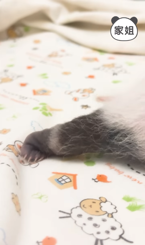 從影片可見,「家姐」不時撐着腿,顯得相當有力,身上也長出更多白色毛發,逐漸變得黑白分明。