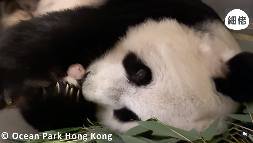 海洋公園今晚(11日)於社交平台發布一對大熊貓龍鳳胎的最新影片,見到盈盈躺在地上,單手抱着細佬,不時舔其「面珠」,場面十分溫馨。