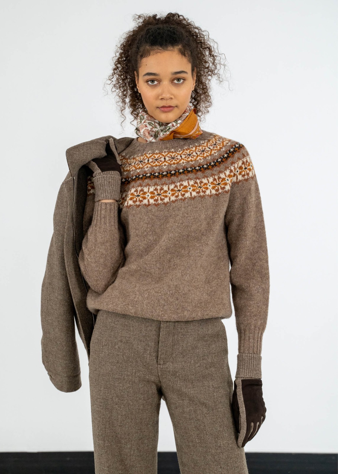 以「City Western Colors」為主題的設計,巧妙運用米色、棕色等秋冬美拉德色調,營造悠閒溫馨的舒適氛圍。系列主推輕盈舒適的針織外套與套頭衫,搭配天鵝絨、仿皮草等,為衣着添增層次感。「The Party」及「Parisian Elegance」系列以亮麗的法式優雅提供冬日派對的最佳選擇,前者以亮片、紋理面料為主,包含皮革流蘇短裙、黑金色針織衫等,演繹低調亮麗的法式品味;後者靈感來自男士的衣櫥,女裝輪廓結合陽剛與陰柔美,呈現巴黎的率性韻味。