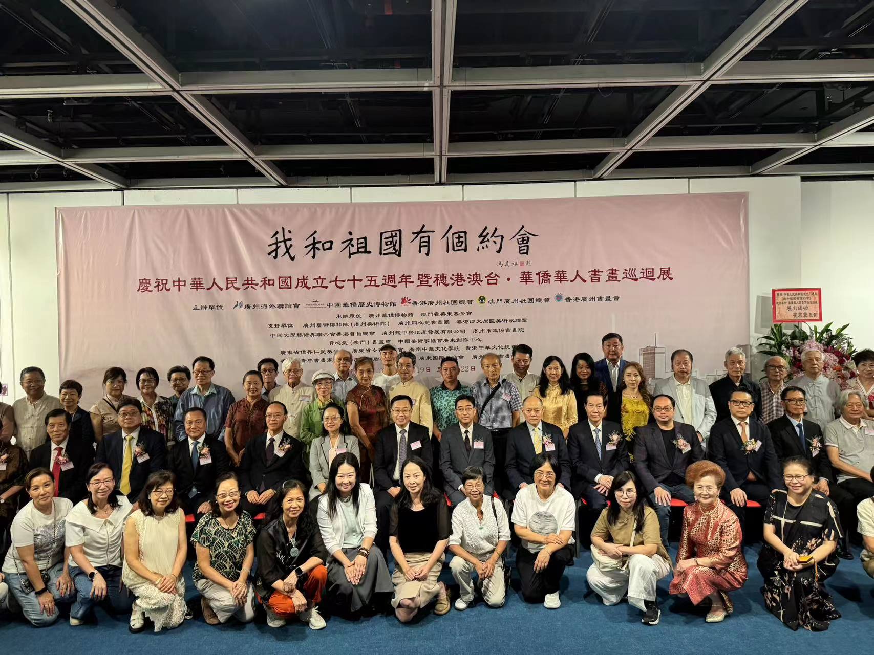 書墨迎華誕,丹青頌祖國。為慶祝中華人民共和國成立75周年,展現海內外中華兒女與祖國同頻共振、攜手前行的美好願景,由廣州海外聯誼會、中國華僑歷史博物館、香港廣州社團總會、澳門廣州社團總會、香港廣州書畫會主辦,廣州華僑博物館、澳門霍英東基金會承辦的「我和祖國有個約會--慶祝中華人民共和國成立75周年暨穗港澳台·華僑華人書畫巡迴展(香港站)」今日在香港大會堂低座展覽廳開幕。