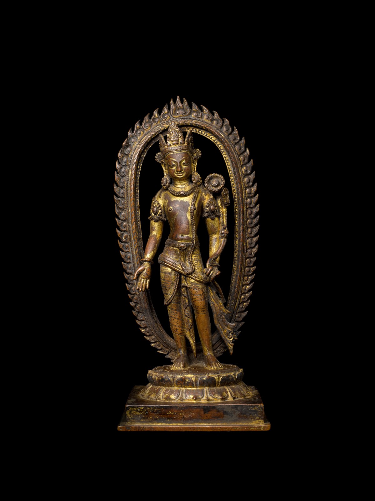 來自紐約的Carlton Rochell Asian Art展示《蓮華手菩薩》,鎏金銅,尼泊爾,約10世紀。