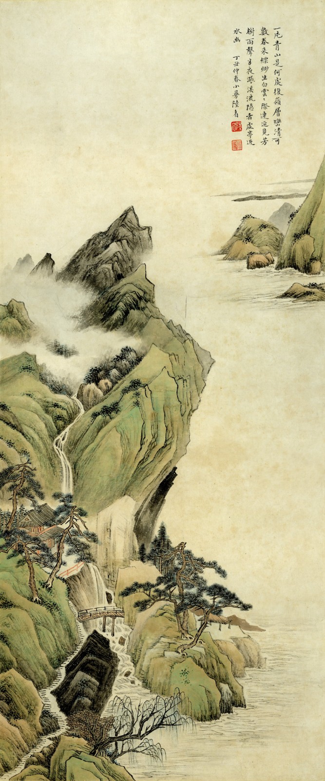 來自上海及台北的松蔭藝術展示陸小曼(1903-1965)作品《青山復嶺圖》,1937年。