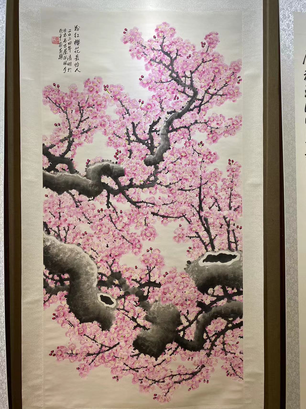 李秋平在繪畫上師從嶺南畫派高劍父的入室弟子黎明,書法上則師從原澳門大學教授陳頌聲。在李氏數十年的藝術生涯中,筆耕不輟學,勤奮學習。繪畫作品以花鳥、山水為主,尤其擅長描繪牡丹、荷花、竹子、菊花以及禽鳥等題材,在書法方面,則以行草見長。作為嶺南畫派第三代弟子,他把畫派技術、知識、技巧傳授給別人,於澳門大學及眾多社團教授中國水墨畫班及書法班,並在內地、香港、澳門乃至東南亞等多個城市,舉辦超過150場文化推廣活動,用筆墨傳遞情感。是次展覽,李秋平通過水墨畫和書法,表達對祖國的祝福。(記者:Janice)