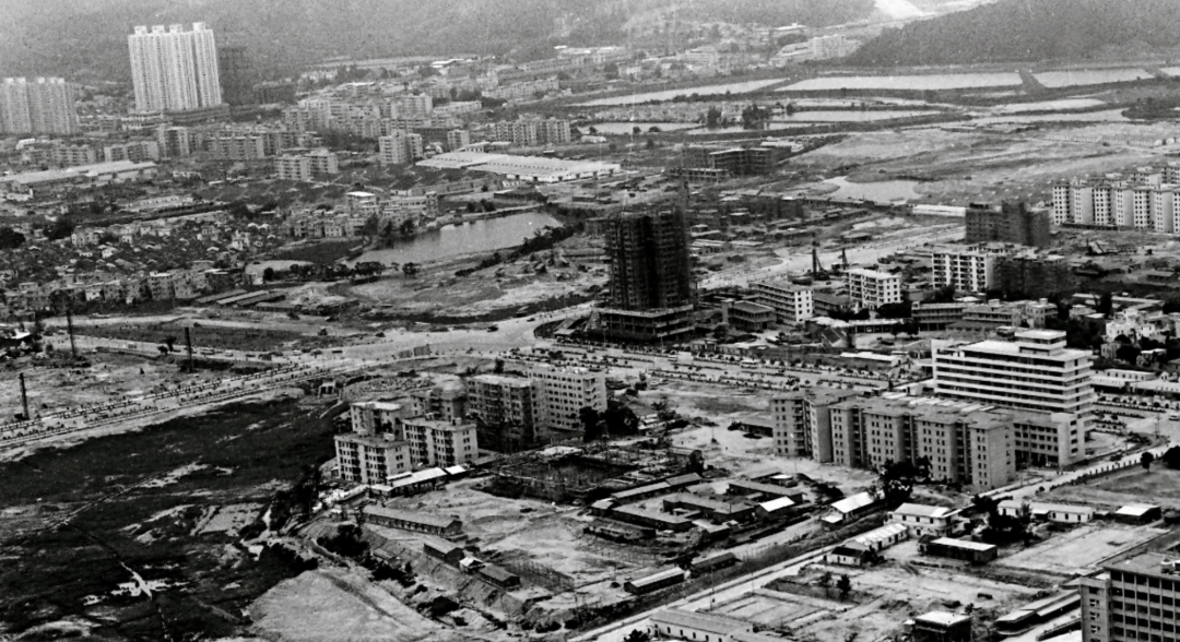 1985荔枝公園工地及羅湖與福田交界處(上圖)與2021年荔枝公園及羅湖與福田交界處(下圖)
