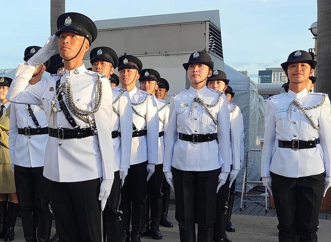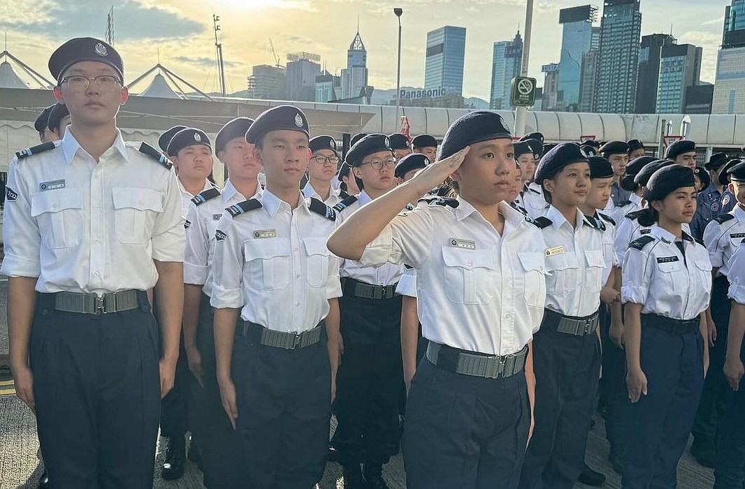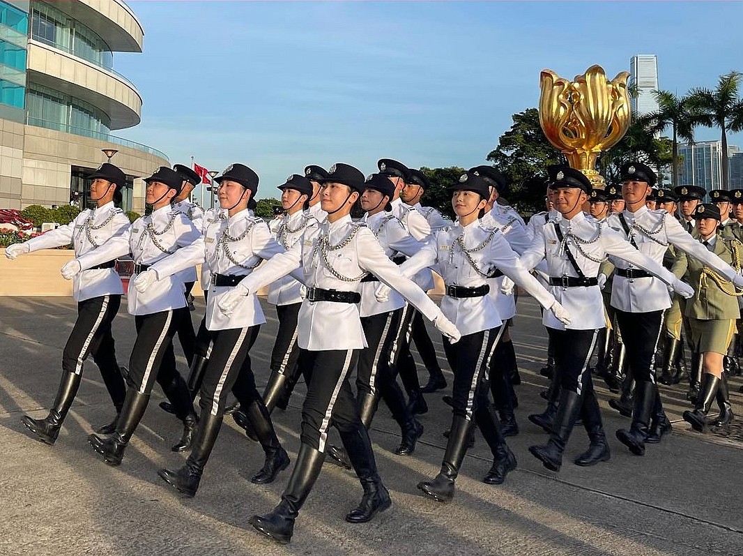 為慶祝中華人民共和國成立75周年,各紀律部隊儀仗隊聯同青少年制服團隊,今早(10月1日))在灣仔金紫荊廣場參與國慶升旗儀式。