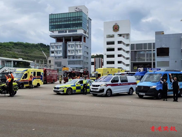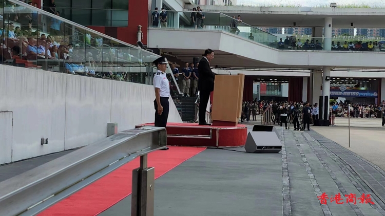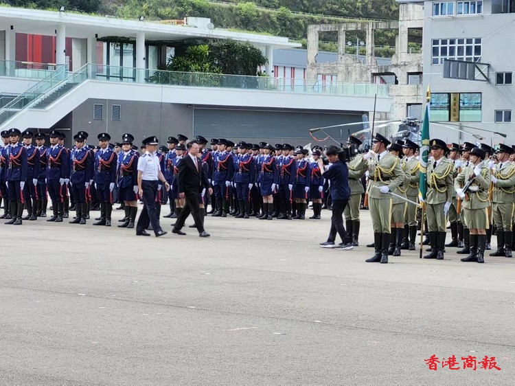 保安局率領轄下紀律部隊和輔助部隊聯同青少年制服團體,今午在將軍澳消防及救護學院舉行「慶祝中華人民共和國成立75周年紀律部隊及青少年團體大匯演暨同樂日」。(記者葉家亨攝)