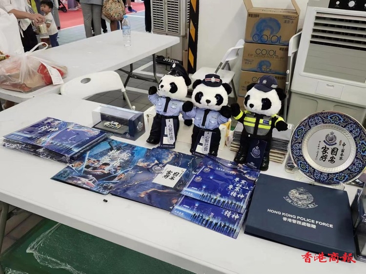 有攤位售賣警察造型的公仔。(記者 葉家亨攝)
