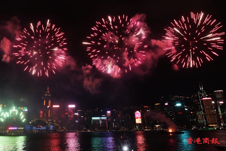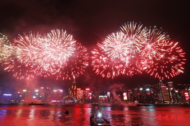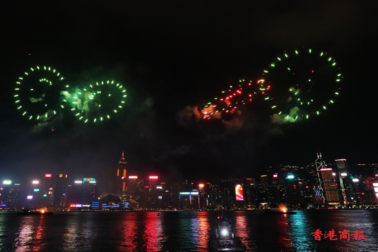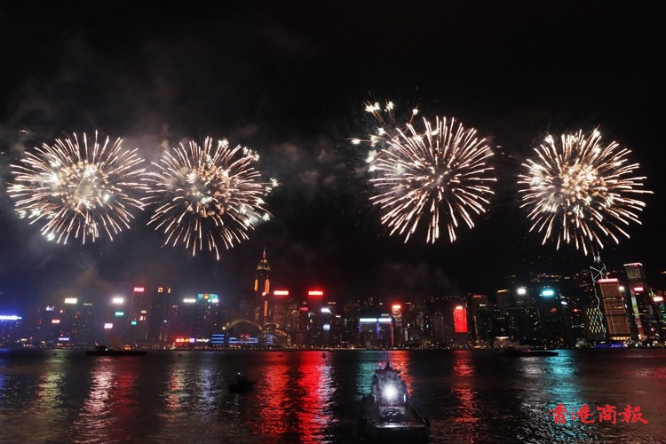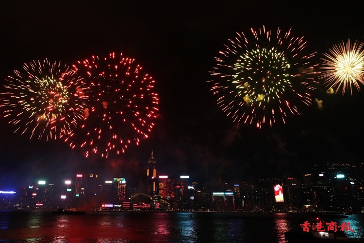 由香港中華出入口商會贊助的國慶煙花匯演今晚(1日)9時05分在維港上空上演,主題為「盛世煙花耀中華」,由3艘躉船及6艘小浮船,發放31888枚禮花彈,歷時約23分鐘結束。