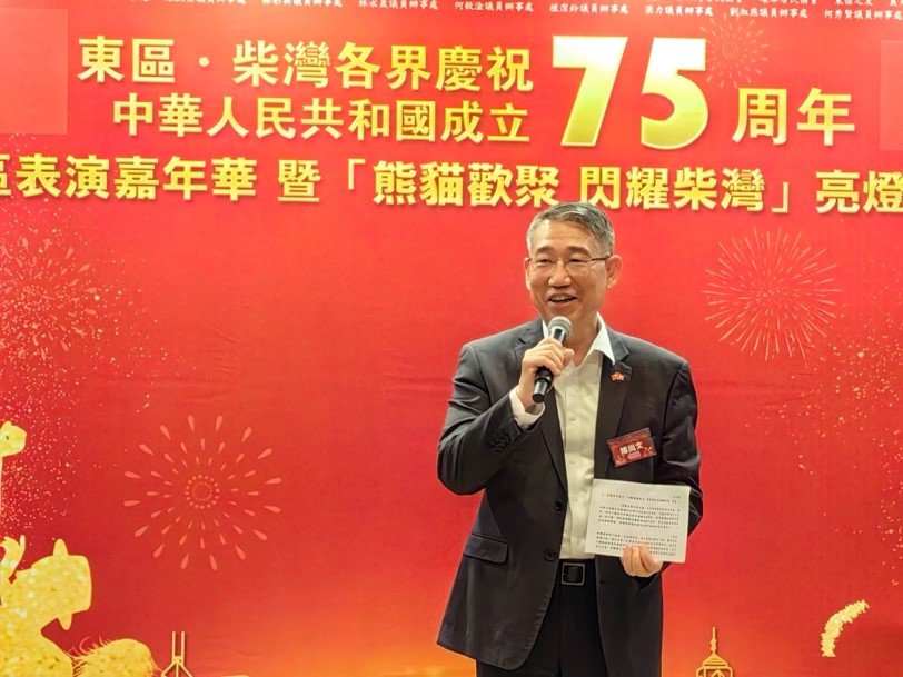 頂圖:「東區·柴灣各界慶祝中華人民共和國成立75周年社區匯演嘉年華暨『熊貓歡聚 閃耀柴灣』亮燈儀式」,賓主合照。