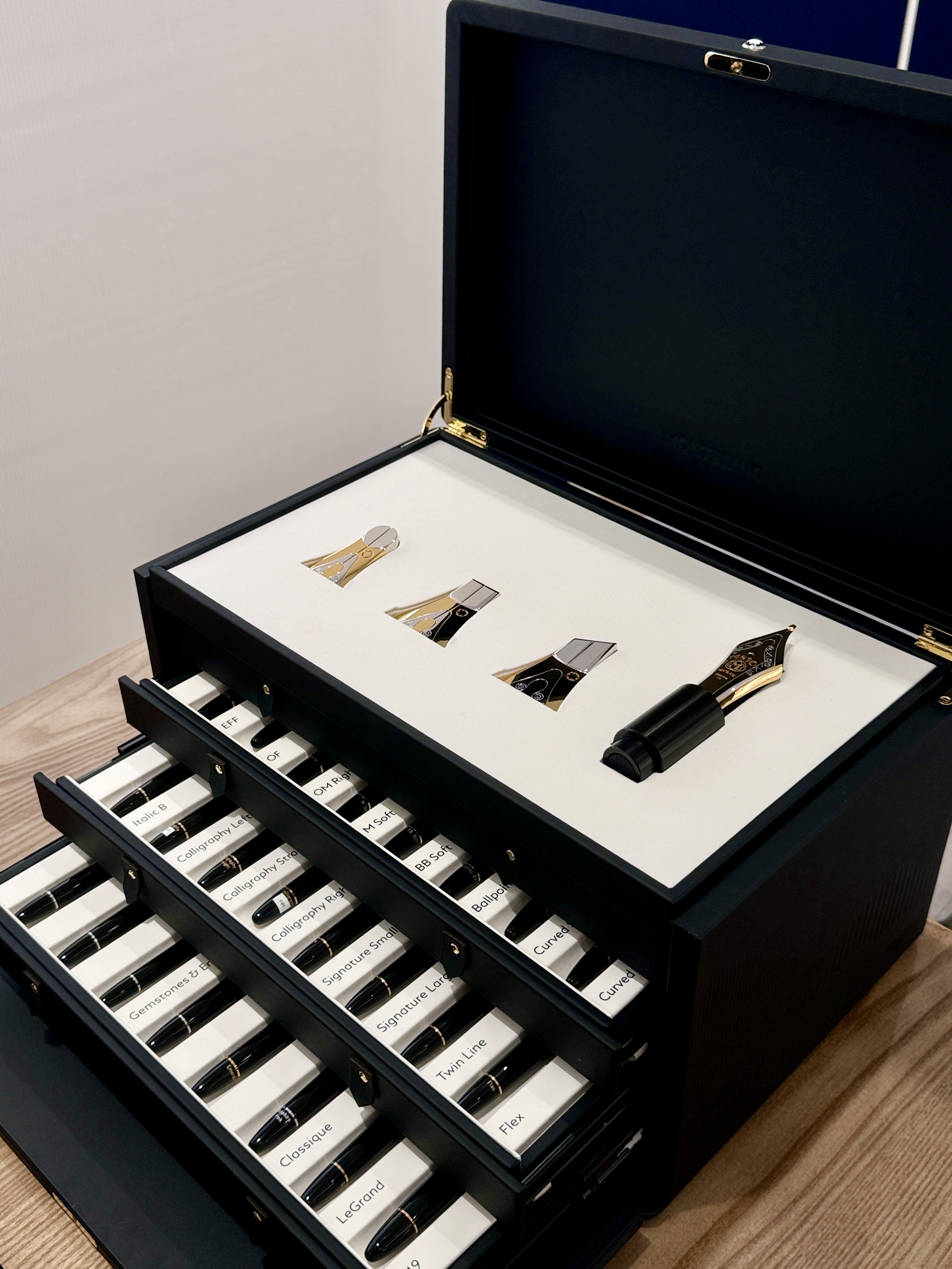 展覽的亮點之一是品牌在書寫工具技術上的多次革新,特別是上墨系統的演變。包括以防漏設計而聞名的早期安全筆,以及槓桿上墨器、氣動泵上墨器和按鈕上墨器,20 世紀 30 年代推出的活塞上墨器至今仍然是該品牌鋼筆的核心,展現書寫技術逐步升級。展覽特別展示了新款「Meisterstück Traveller 1924」鋼筆,新作結合了傳統與現代技術,採用獨特的填充機制,進一步提升了書寫過程的便利性。