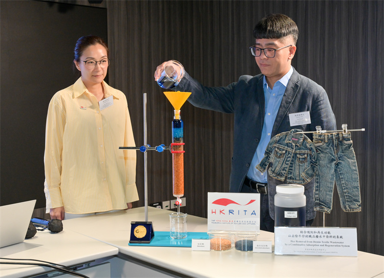 香港紡織及成衣研發中心研發的「結合吸附和再生功能以去除牛仔紡織品廢水中染料的系統」。(政府新聞處)