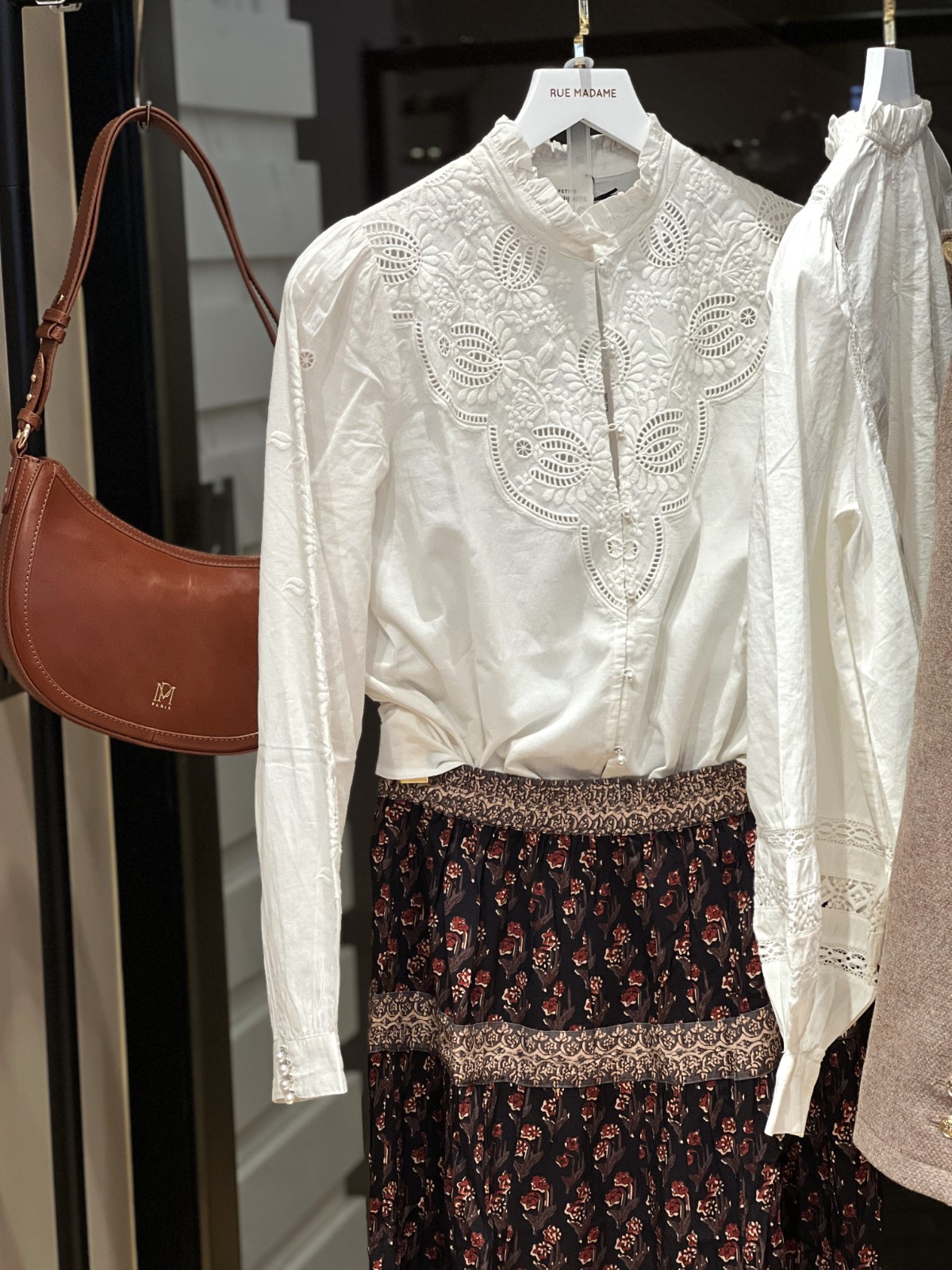 短裙套裝重新詮釋經典的英倫風格,剪裁合身的西裝裙適合入冬時穿着,有型又精緻。浪漫的碎花飄逸連身短裙是秋冬季的不二選擇,圖案靈感源自綠油油的草地,搭配長靴、羊毛或人造皮草外套,可打造出復古的民族風。蕾絲襯衫有如Tokyo襯衫和Tissam襯衫,向作家Jane Austen(簡‧奧斯汀)致敬,以寬鬆剪裁和現代色彩彰顯女性的氣質和魅力,知性優雅永不過時。其中米白色的Tokyo襯衫飾有蕾絲花邊,採用貼膚舒適的有機棉,柔和的色調、精緻的做工散發出高雅感。Tissam襯衫的碎花圖案及高領設計適合秋季造型,加上細膩的垂墜皺摺細節,大方得體。配搭上品牌的皮革手袋,便能搭配出時髦的都市造型。 (記者、部分圖片:Janice)