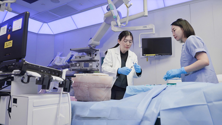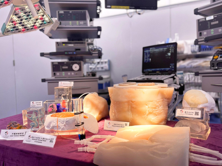 隨着3D打印技術愈趨成熟,東區醫院的團隊近年致力研發不同的人體觸感模型,供醫護人員作臨床培訓時使用。唐嘉信說,模型的表面手感貼合人體觸感,當醫護人員使用儀器進行穿刺訓練時同樣感覺貼合人體皮膚、肌肉、內臟和血管。模型以真實的電腦掃描、磁力共振和正電子電腦掃描數據,配合人工智能識別技術及3D打印技術製作而成,更可支援醫護人員透過超聲波掃描觀察模型內部。