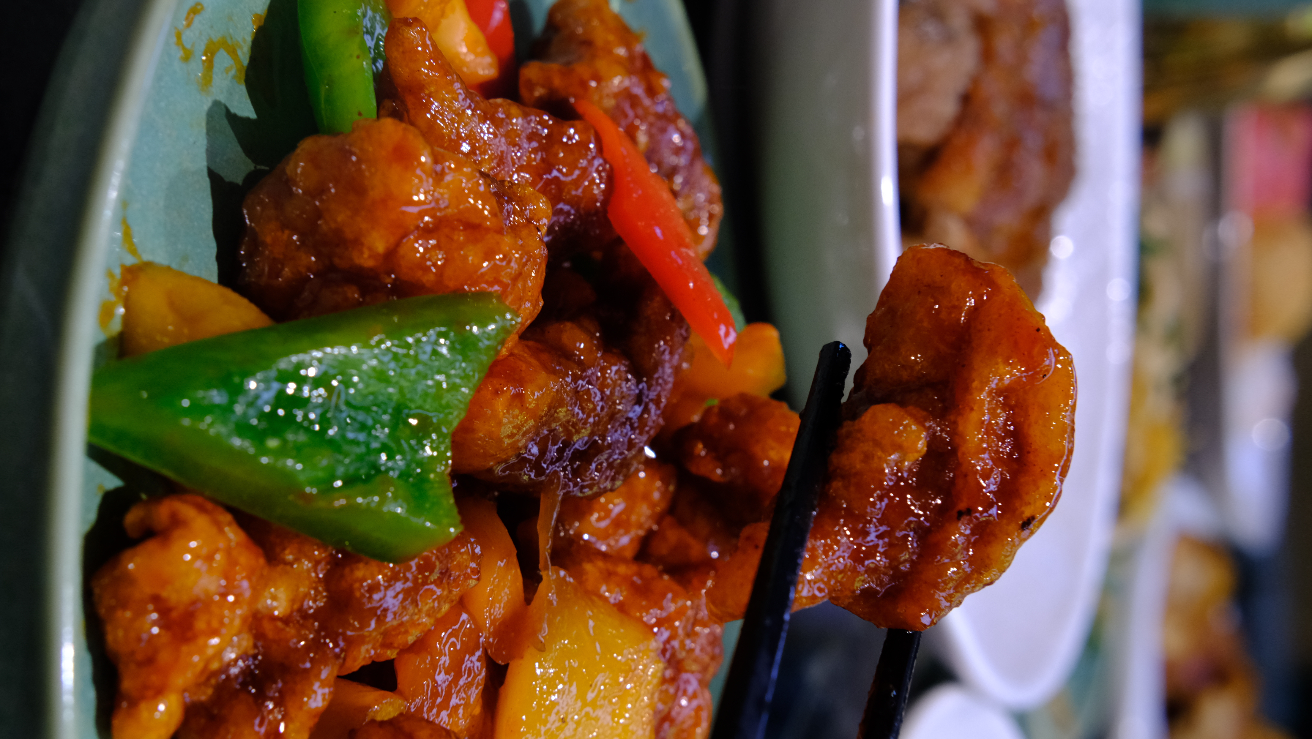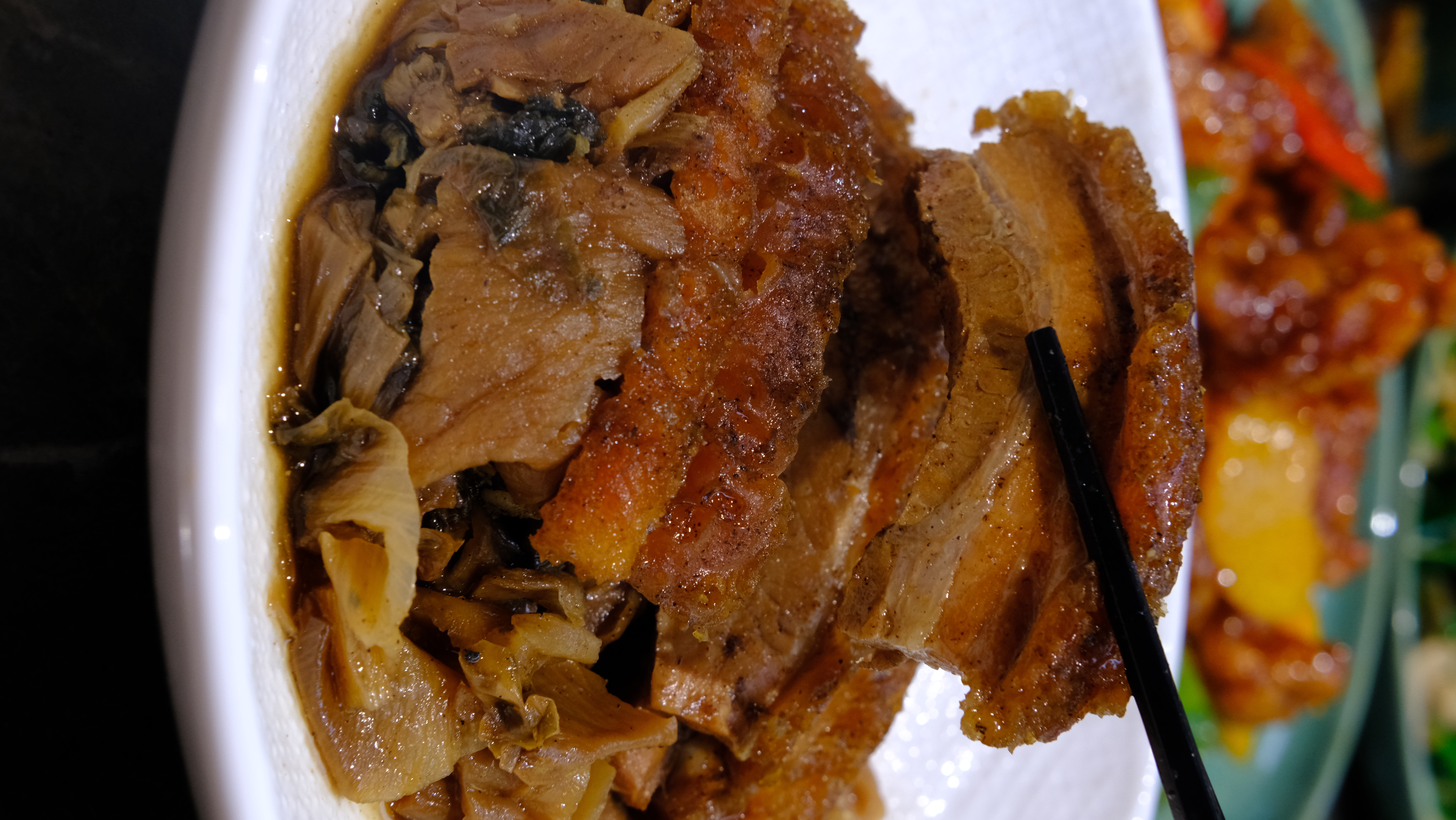 餐廳並提供多款特色菜式,蜜汁叉燒是港式燒味的經典代表,使用脢頭豬頸肉部位,師傅先以醃料將肉入味,再以「蜜燶」燒法明火燒製,鎖住肉汁,最後塗上麥芽糖,微焦叉燒多汁嫩滑,香而不膩。家鄉梅菜燜扣肉以石澳產梅菜王及梅菜芯製成,梅香味濃郁,口感爽脆,扣肉選用兩至三層的豬肉部位,經過2個半小時的慢火燜煮,味道濃郁。龍蝦豆豉脆生麵採用原隻龍蝦,配上酥脆的炸麵餅,麵餅以半煎半炸方式烹調,保留麵條煙韌口感,再淋上豉汁,提升龍蝦的味道和口感。甜酸咕嚕肉是本地人和旅客最喜愛的小菜之一,選用偏瘦的豬肉炸至表面酥脆,搭配蜜桃及微辛的醃子薑,酸甜開胃。(記者、攝影:Karena)