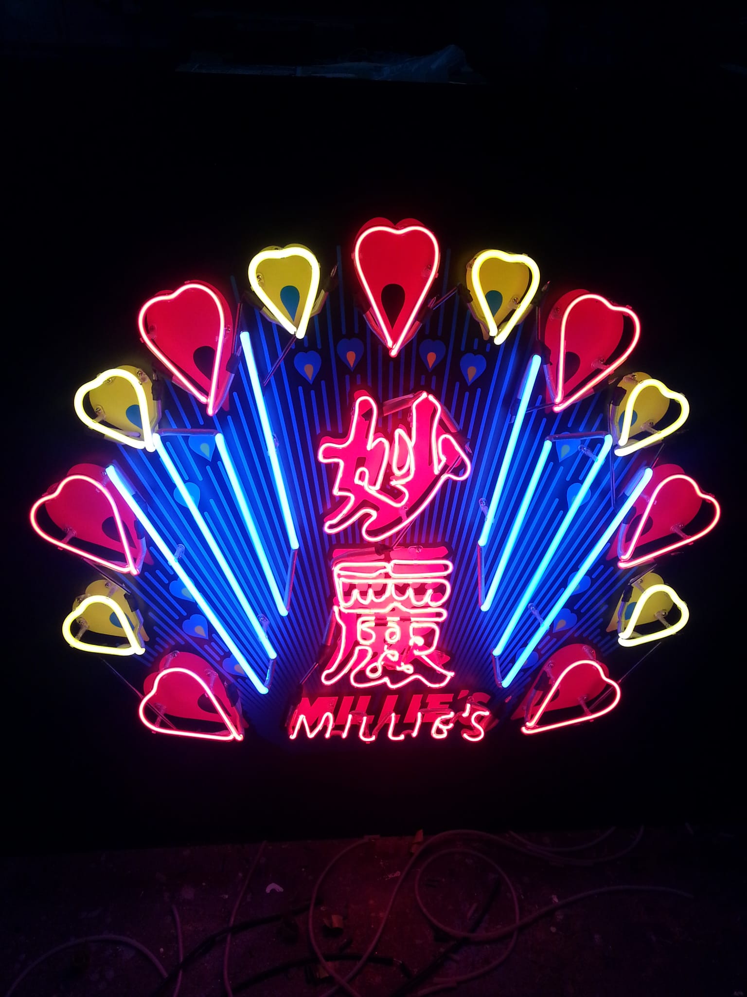 現年57歲的胡師傅,過去40年親歷了行業的高低跌宕,但他仍然不捨放棄這門手藝。「回想八十年代後期,我與師兄弟一同開設霓虹光管工場,經常接到大型招牌訂單,為趕工會將招牌上的字分拆給不同的霓虹公司、工場負責,各自做好後再組合裝嵌於燈箱上。那時旺市,更衍生出住家式屈光管師傅,多數於油尖旺的唐樓裏,在一張大飯桌上工作。」胡師傅回憶,最忙時試過整整兩星期沒有回家,晚上做累了在工場開一張摺床倒頭就睡,醒來又繼續工作。「記得當年『餐廳』和『海鮮酒家』是最常用的字,『餐廳』及『鮮』字燒製難度最高。」那些年紅紅綠綠的海鮮酒家、大酒樓霓虹燈招牌照亮整條彌敦道,胡師傅在那個被形容為「魚翅撈飯」的時代,工作多到應接不暇,月入高達四五萬元。如今「魚翅撈飯」的畫面,只存在於人們的回憶和相片之中。胡智楷亦從以往做大商戶的招牌,轉為現時製作小型霓虹燈飾。雖然收入遠不及往昔,但他說現在的工作過程更開心,能夠完成一件富藝術感的作品,成功感更強烈。「我依然喜歡霓虹燈,經過人手扭曲,每一支霓虹光管會呈現不同的效果。」他表示霓虹燈可在小範圍內製成立體燈飾,反觀LED需要有支撐物,暫未完全取代霓虹燈。