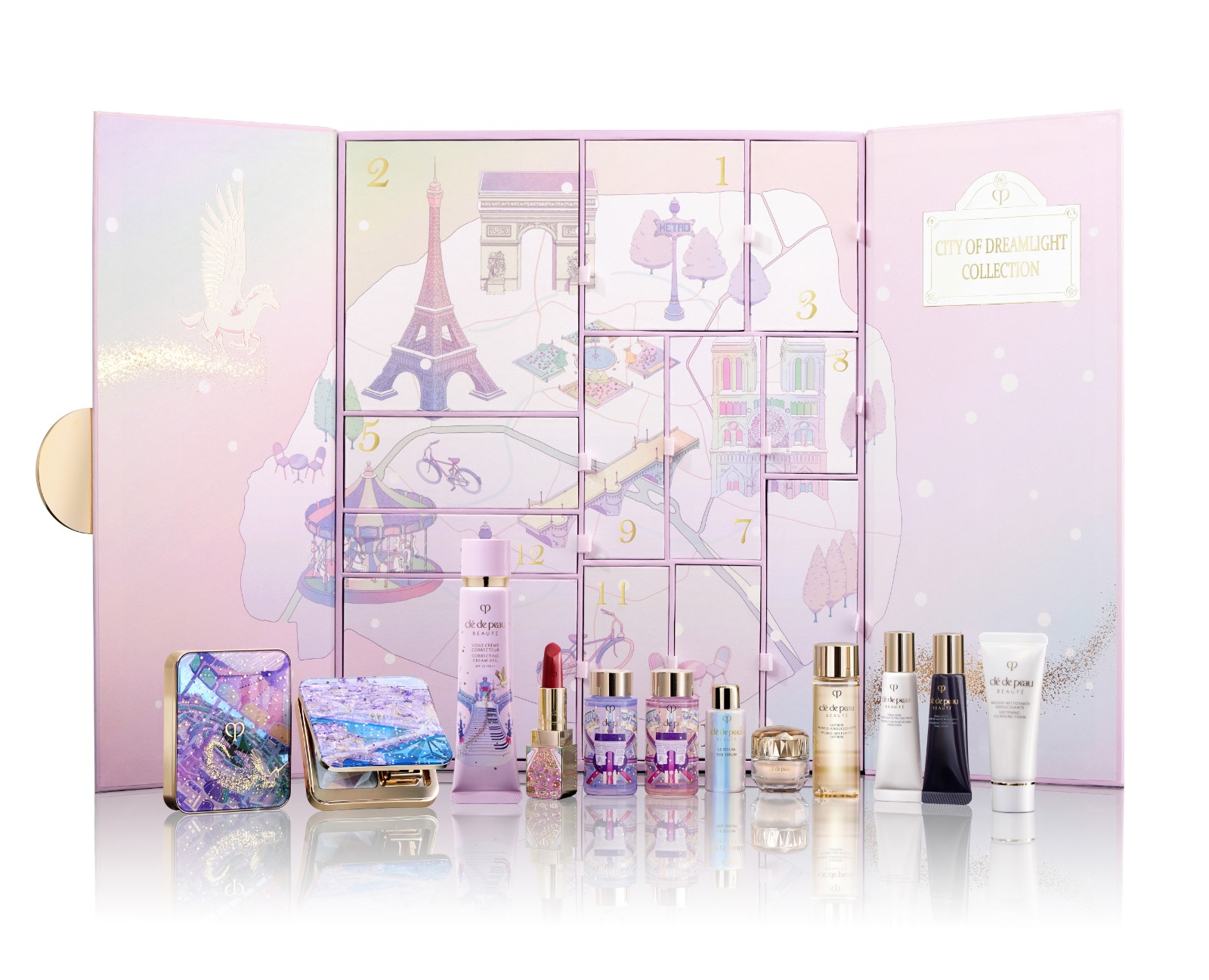 Clé de Peau Beauté首度推出香港聖誕限定的光幻夢城限量聖誕倒數月曆,將追夢的幻想與巴黎的魅力交融。月曆粉色盒面飾有巴黎著名地標凱旋門,掀開後是一幅巴黎地標建築地圖。奢華精緻的12天倒數月曆內,蘊藏5款人氣節日限定產品及6款精選旅行裝產品,包括四色眼影組合、亮膚光映粉、柔亮唇膏等,一次體驗品牌的皇牌護膚及美妝產品,助締造細膩光澤妝容。每打開聖誕倒數月曆的一扇門,都代表女士距離綻放閃耀光芒又邁進一步。月曆中包含了限量版City of Dreamlight光幻夢城夢幻拼圖,為巴黎探索之旅留下印記。