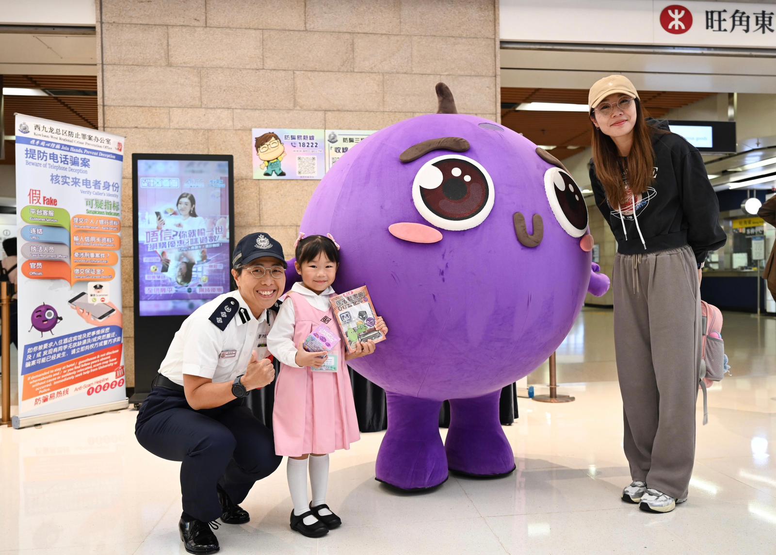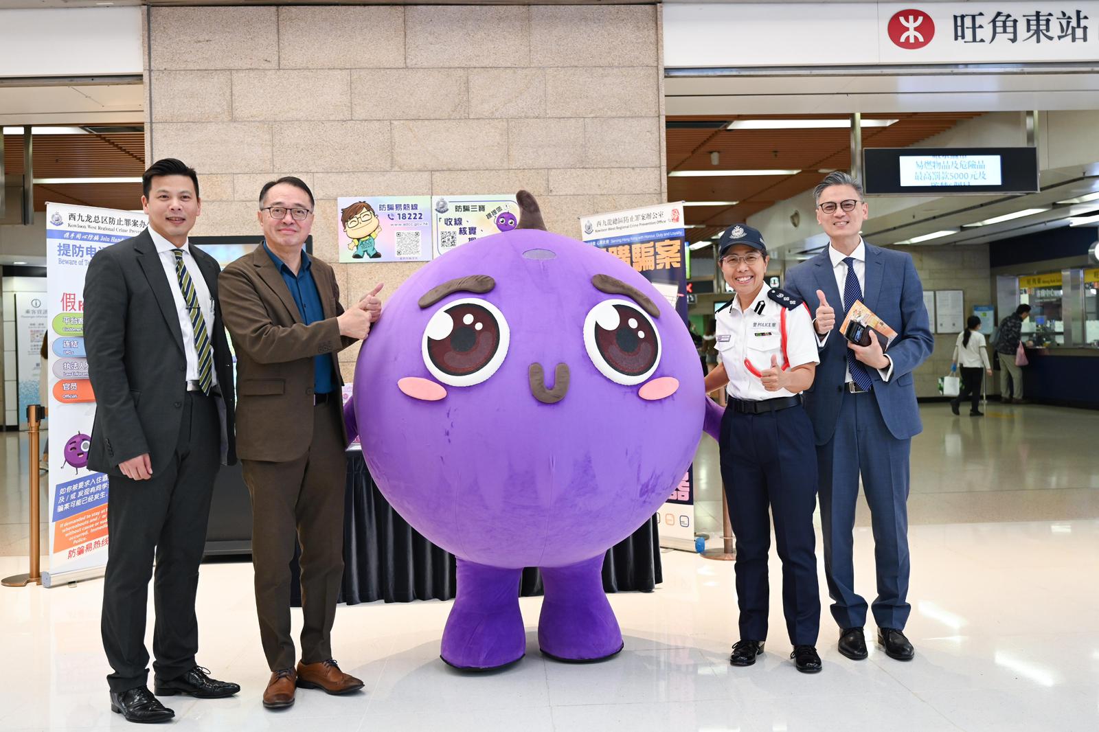 西九龍總區副指揮官譚雅靜總警司聯同油尖旺區撲滅罪行委員會成員,於今日(22日)帶領旺角警區「薪火計劃」學員,到訪旺角區商場及港鐵站,進行針對性防騙宣傳工作。是次活動獲得美心集團及港鐵公司等多個社區夥伴積極參與。