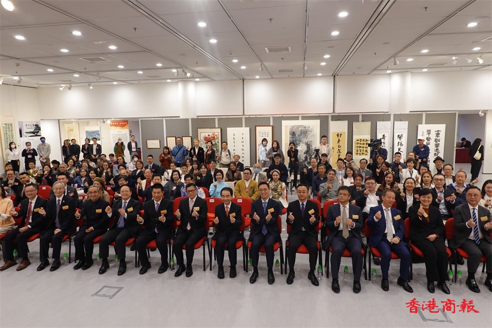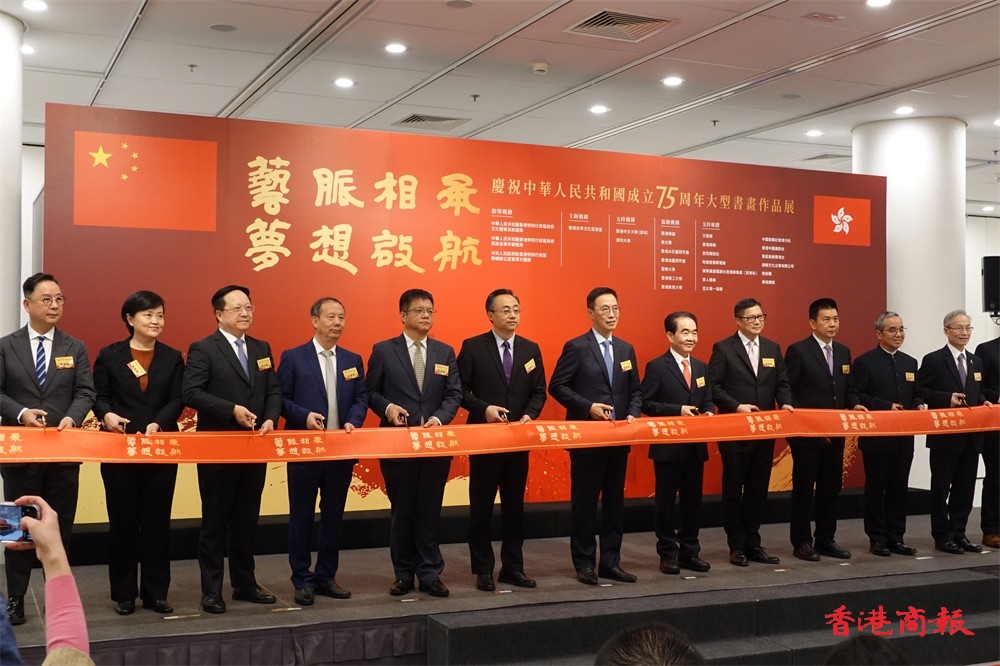 為慶祝中華人民共和國成立75周年,搭建兩地高校師生、藝術家之間的交流平台,香港各界文化促進會今日(27日)起至12月2日,於香港中央圖書館展覽館舉辦「慶祝中華人民共和國成立75周年暨藝脈相承·夢想啟航大型書畫作品展」。文化體育及旅遊局局長楊潤雄表示,書畫能讓人感受中華文化的魅力,重申特區政府公布文藝創意產業發展藍圖,會繼續弘揚中華文化,並將文體旅融合,同時帶動經濟。