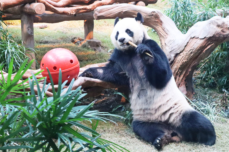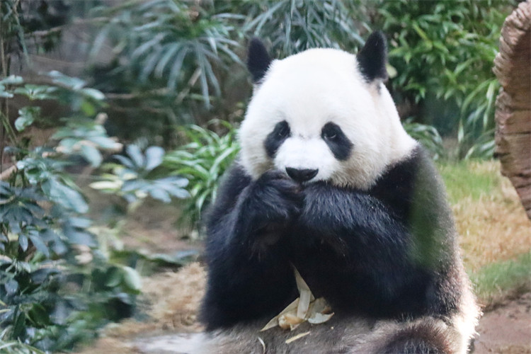 兩隻5歲的大熊貓,分別獨居於香港賽馬會四川奇珍館兩個展區。雌性的「可可」體型較細,四肢較短,雖然喜歡獨處,但見到記者後,不時爬來爬去,在鏡頭面前食竹筍;體型較大的雄性「安安」,四肢更為修長,面對鏡頭亦不害羞,躺在地上食竹葉。