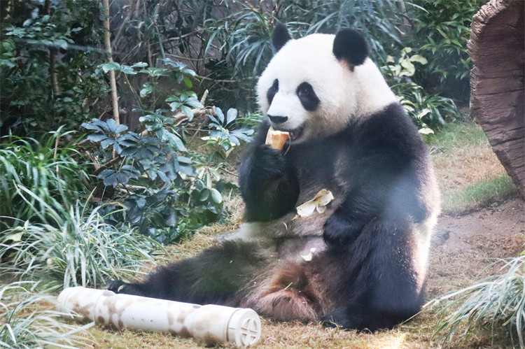 海洋公園表示,一對大熊貓的適應生活順利,食量不錯,每日分別吃10公斤的竹葉,「安安」愛吃紅蘿蔔,「可可」就愛吃蕃薯,「可可」相比「安安」較文靜,動作亦較慢條斯理。