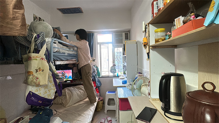 33歲的奇奇,與丈夫及一對分別12歲和7歲的子女蝸居於葵涌120呎劏房超過7年。家中環境潮濕,需要經常打掃,頻繁的家務加劇奇奇長期腰患。她指出,由於家裏空間有限,做家務的時候不能得心應手,心情容易煩躁。更令她擔心的是,家中環境太狹窄會影響小朋友成長,「小孩子在家做作業的空間比較受限,有時候妹妹的東西放到哥哥的書桌上,兩人就會爭吵。」