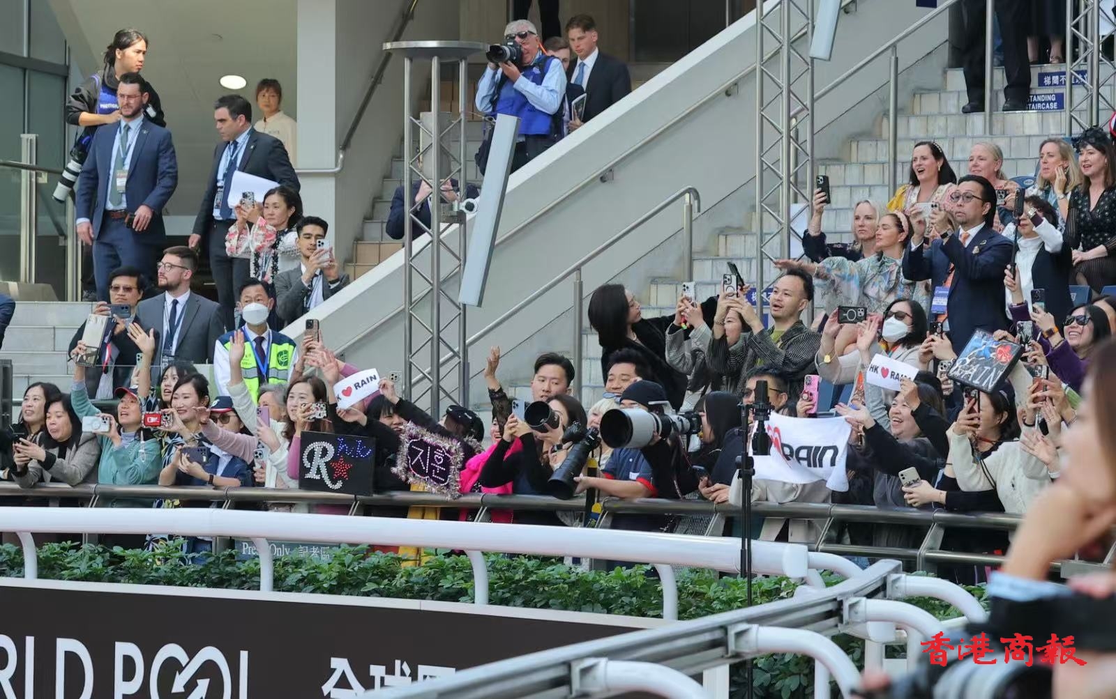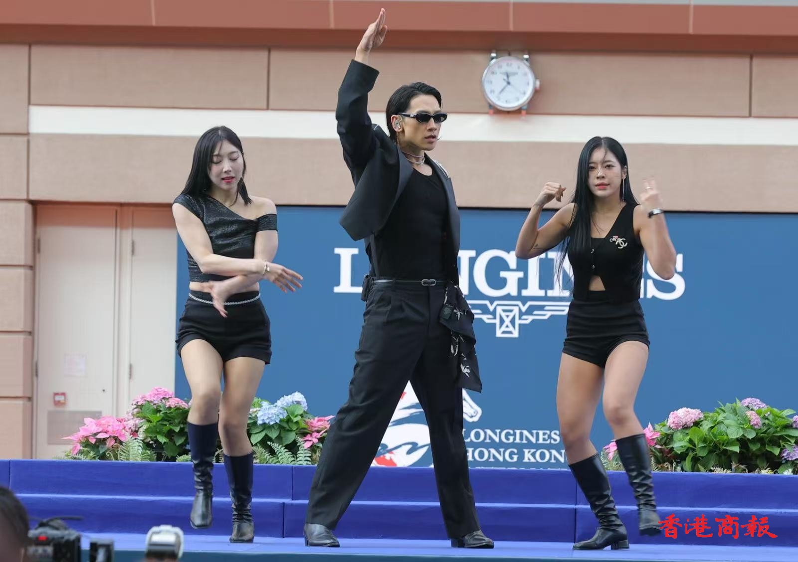 今日(8日)沙田馬場上演浪琴香港國際賽事,賽前開幕表演迎來重量級嘉賓!國際韓流巨星RAIN(鄭智薰)首度踏上沙田馬場舞台,獻唱3首大熱歌曲,為精彩非凡的國際馬壇盛事揭開序幕!RAIN先後唱出《it's raining》、《la song》、《Hip song》。RAIN獻唱《la song》時,特別走到公眾席與現場觀眾互動,唱最後一首《Hip song》前,RAIN更除去黑色外套爆肌露出麒麟臂,惹來現場觀眾一片歡呼,將現場氣氛推向高潮。(文、圖、片:志誠)