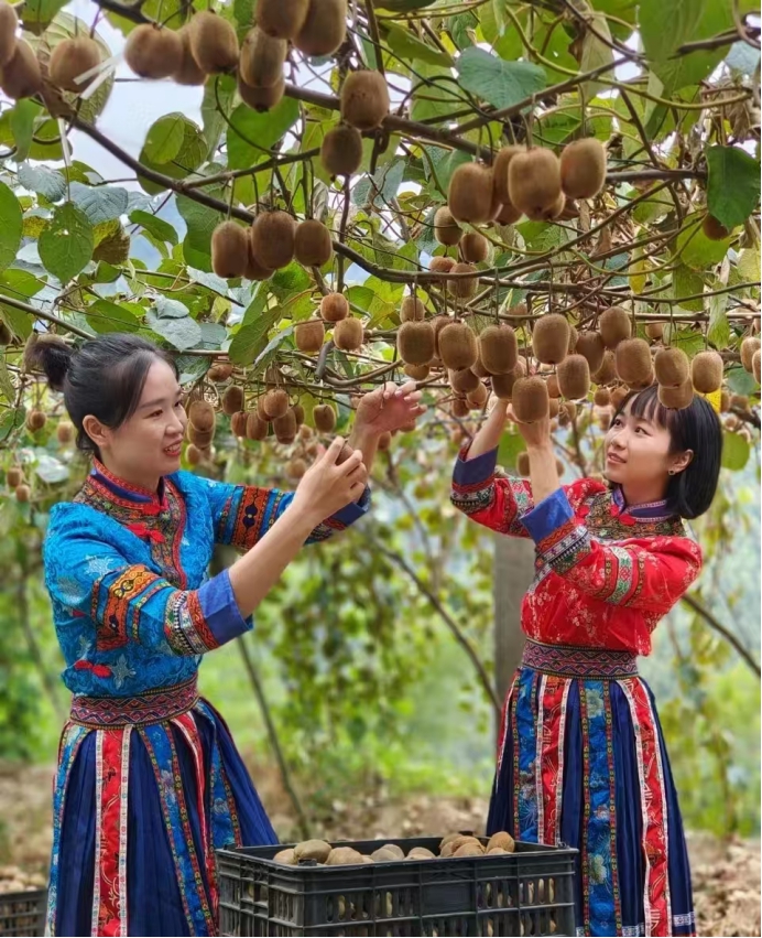 茅坪鎮大古獼猴桃種植基地採摘獼猴桃。(城步縣委宣傳部供圖)