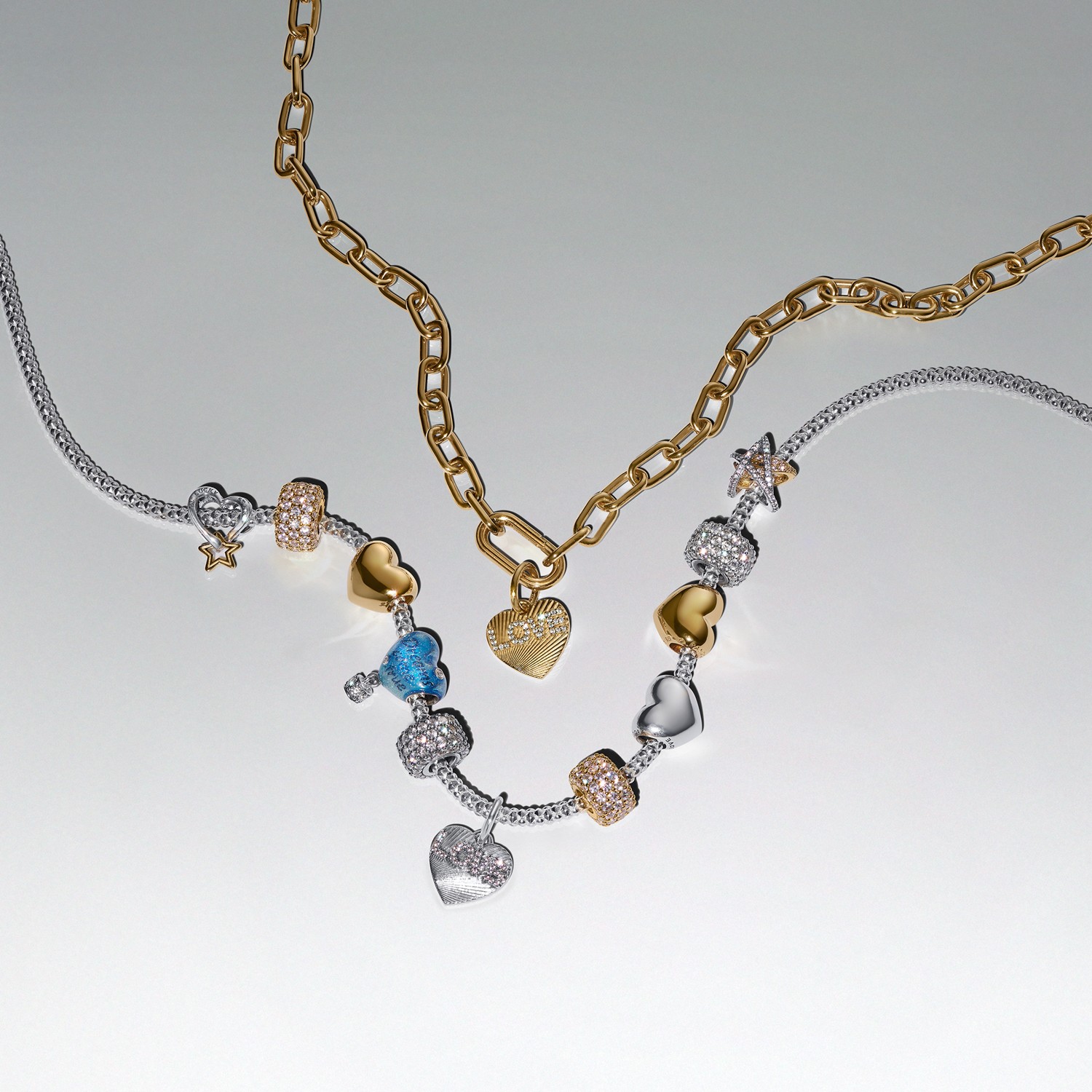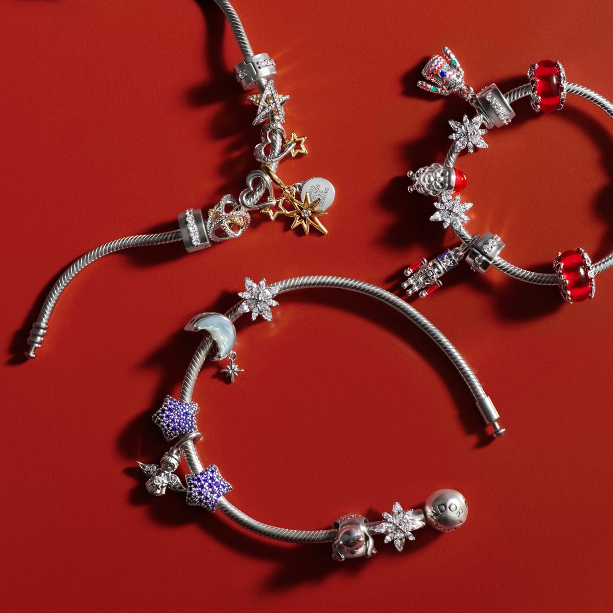 Moments 系列節日新品以星光作為靈感,首次融入北極星元素,融合多種材質與工藝,推出全新設計。925 銀、鍍14k 金、手工吹製的Murano 琉璃以及實驗室人造鑽石,構成了這一系列的基礎元素。設計上,北極星元素象徵指引與守護,例如鑲嵌實驗室人造鑽石的北極星吊飾,或是刻有「GOOD THINGS ARE COMING」字樣的圓牌飾品,展現節日元素。