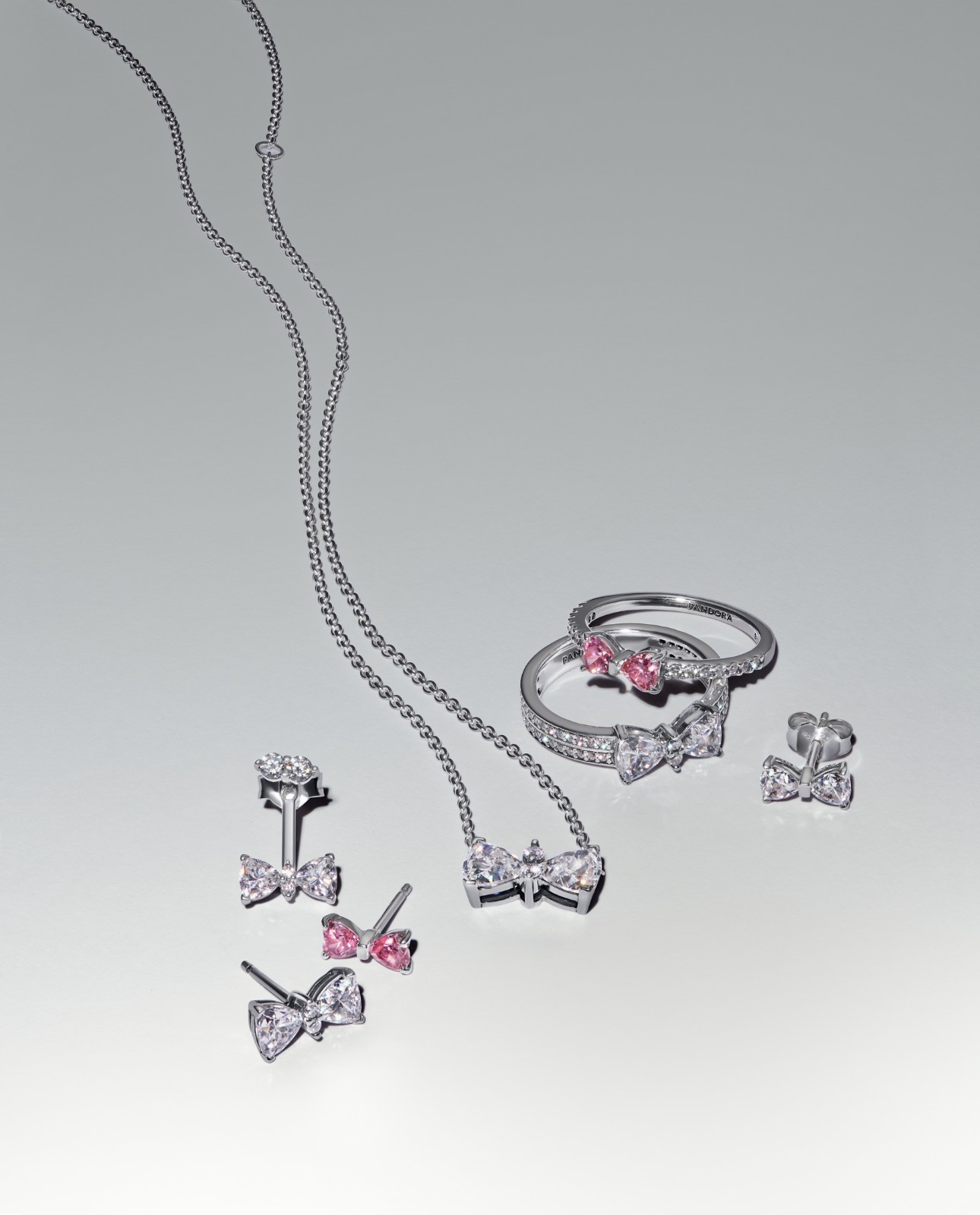 Timeless 系列珠寶以蝴蝶結為核心設計,採用三角形切割的合成立方氧化鋯石交織,並鑲嵌不同形狀的中央寶石。本系列強調愛的力量,珠寶象徵連結與愛,設計風格結合復古與現代氣息,為佩戴者提供多樣的疊戴與搭配可能性,打造出經典又新穎的造型。