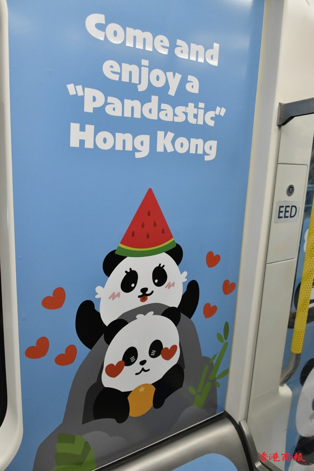 港鐵公司常務總監—香港客運服務楊美珍表示,港鐵即日起推出三列大熊貓主題列車,將運行至明年初,其中兩列行走於海洋公園站所在的南港島線,另外一列是機場快線列車。她說,機場快線承載世界各地的旅客,希望借此吸引更多旅客欣賞熊貓。