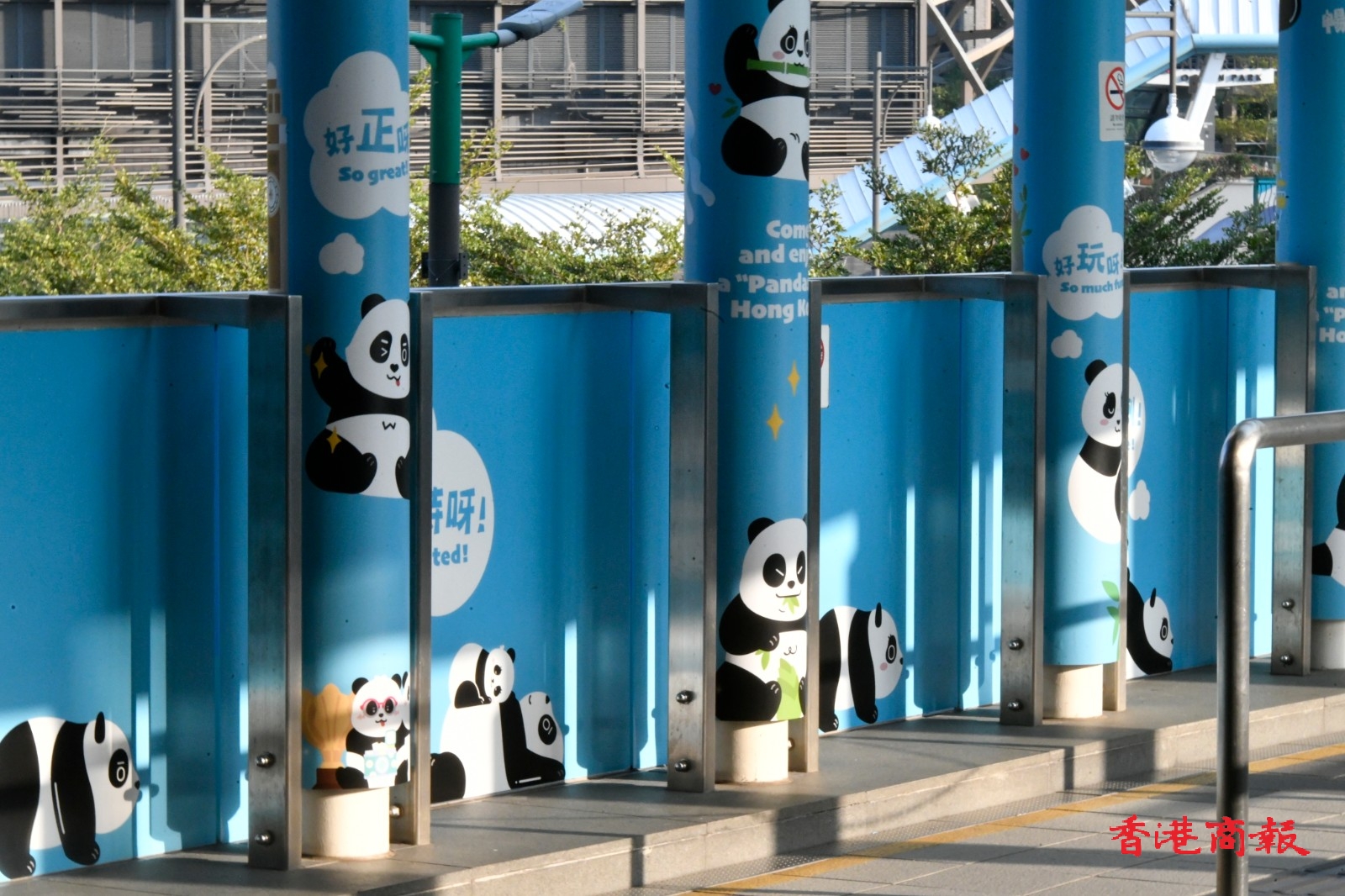由今日起至明年2月中旬,港鐵海洋公園站將化身成大熊貓主題車站,大熊貓「盈盈」「樂樂」「安安」「可可」和一對龍鳳胎「家姐」「細佬」的可愛形象將呈現在車站不同角落,包括客務中心、大堂、月台、樓梯和牆壁等。