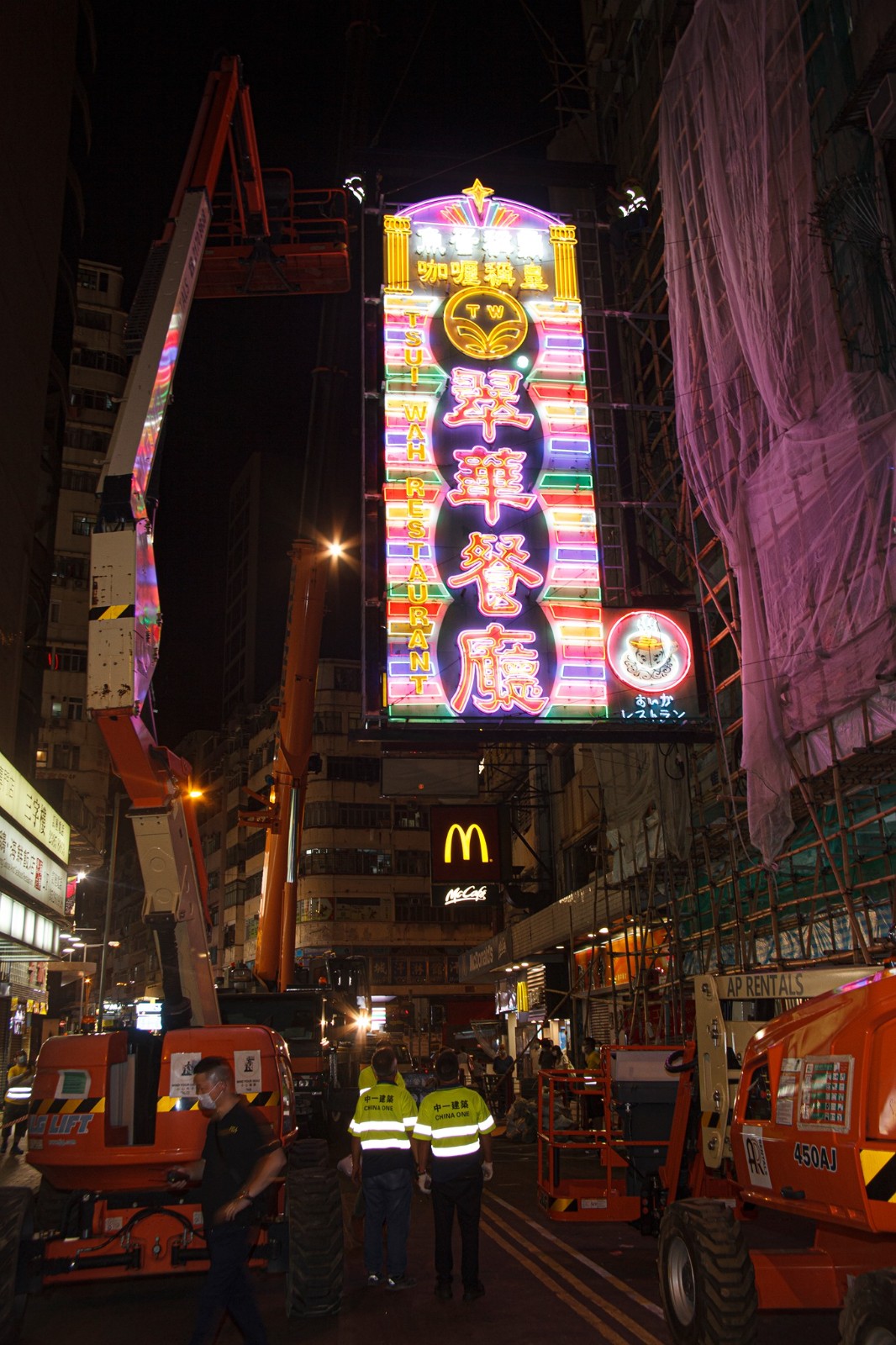 「翠華」是「霓虹交匯」收藏中最大型的招牌。為完整保留它,拆卸時要封路、小巴改道,相當「大陣仗」。(Tetra Neon Exchange提供)