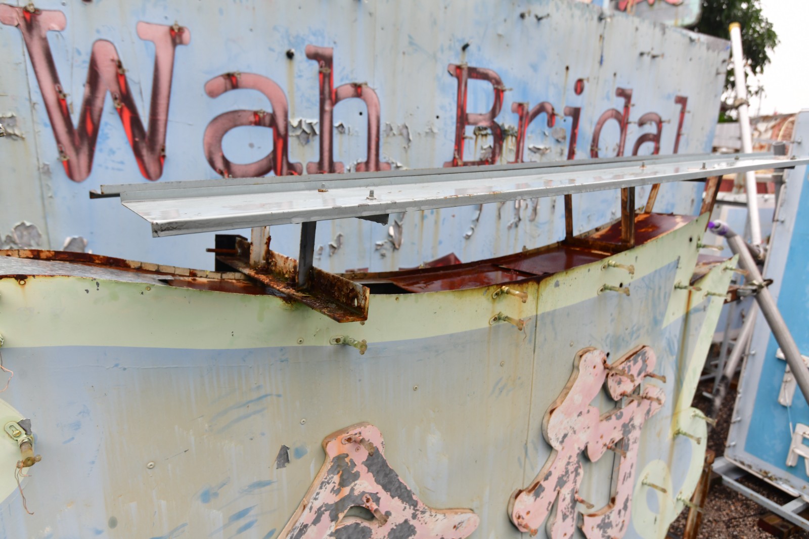 傳統大型霓虹招牌上會以零件『蝦鬚』穩固,遇上大風時就能卸力。