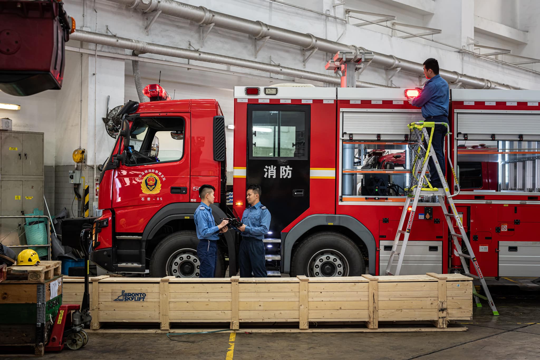 消防處表示,為配合落實《粵港澳大灣區應急救援行動方案》,提升跨境應急救援並聯合應對災難能力,粵港澳救援隊伍正提升三地應急管理工作水平,確保救援資源有效共享,令車輛、人員、裝備和物資在遇有突發事件時可易於調配。消防處工程部日前為4台已取得粵港兩地跨境消防車配額的內地消防車進行檢驗,為取得「兩地牌」作好準備。