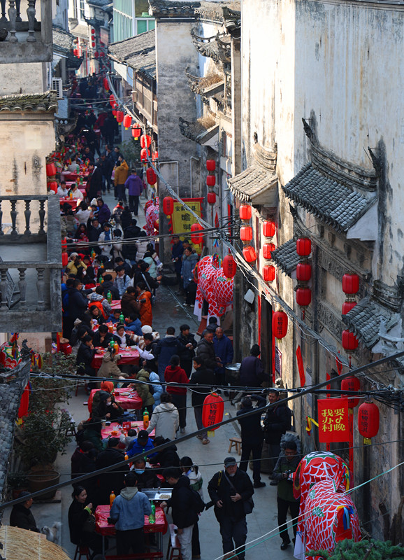 村民們和遊客們圍坐在一起,大快朵頤。在美食的香氣與歡聲笑語中,濃濃的年味在空氣中瀰漫開來,那是對生活的熱愛與對新年的期盼。
