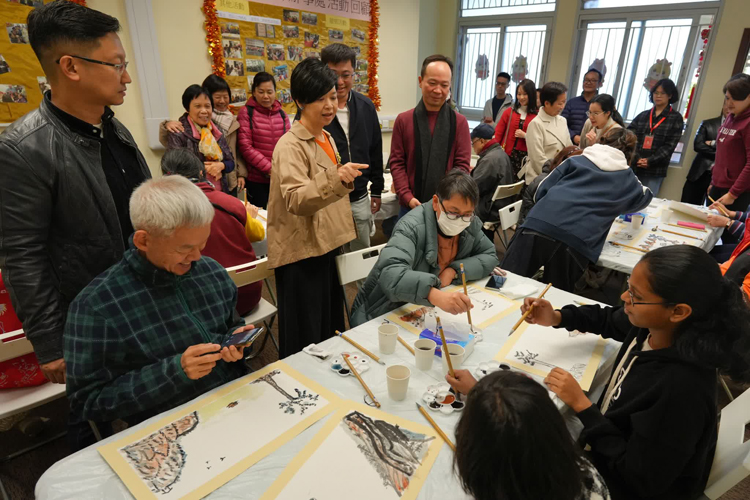 何永賢和一眾議員去到的時候,街坊的畫作已經幾近完成,每一幅作品都頗有意境,相信大家都沒想過,一個下午就畫到一幅能在新年期間向親友展示的得意之作。他們也很快參與其中,一起寫揮春並互相送贈,許下「共築幸福」、「笑口常開」、「龍馬精神」、「大吉大利」等祝願。