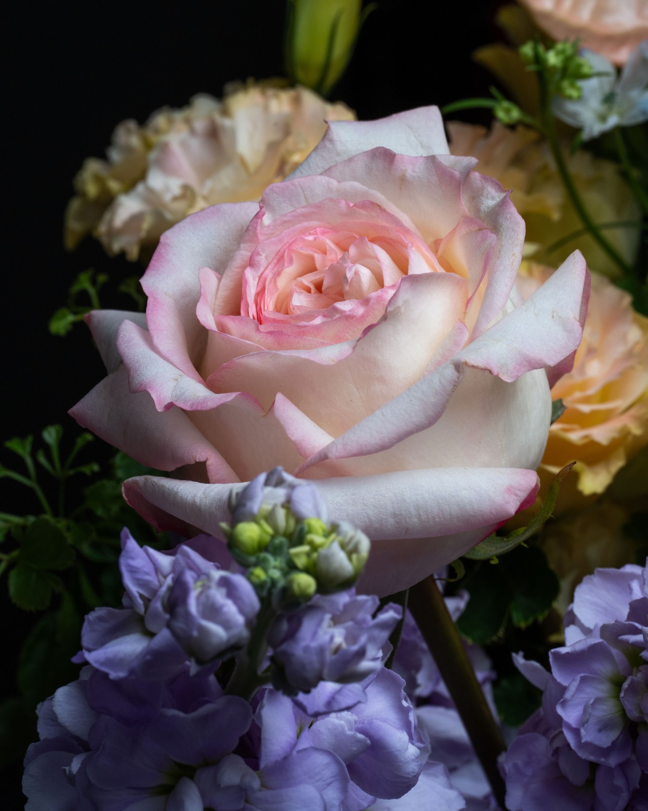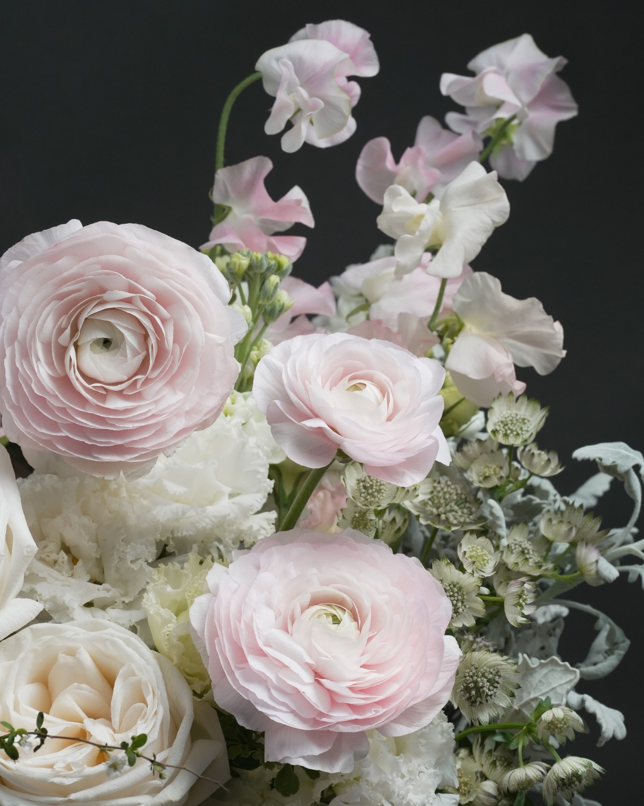 「愛的交響曲」系列的開端是「開場曲(HK$1480至HK$2980)」,花束體現了愛情初期的優雅之美。包含柔和浪漫的白色花園玫瑰和蘭花,引發初次相遇和萌芽聯繫的刺激,玫瑰的淡粉色和蘭花的柔和色調象徵純真和情感的純粹,適合慶祝情感的新開始。