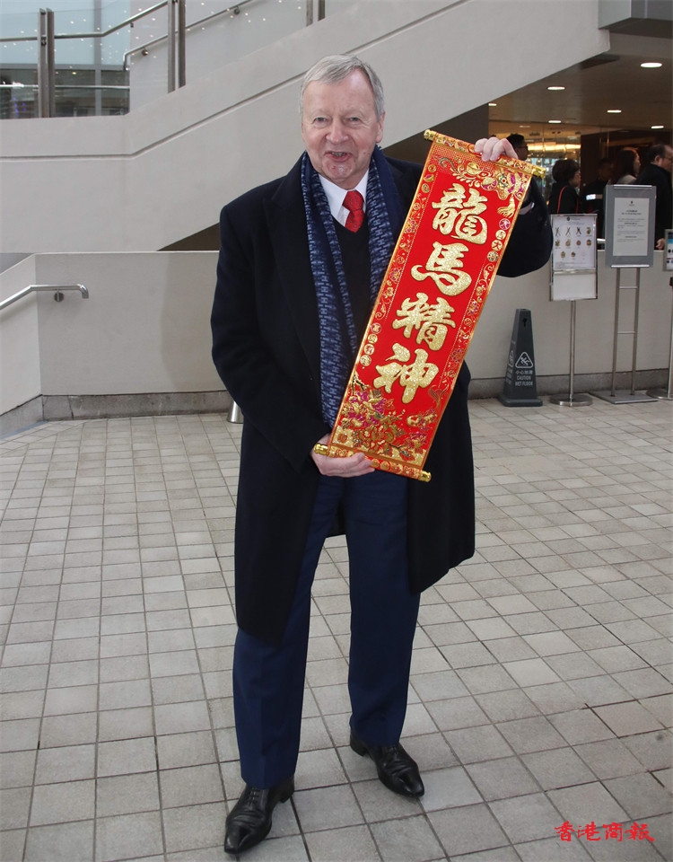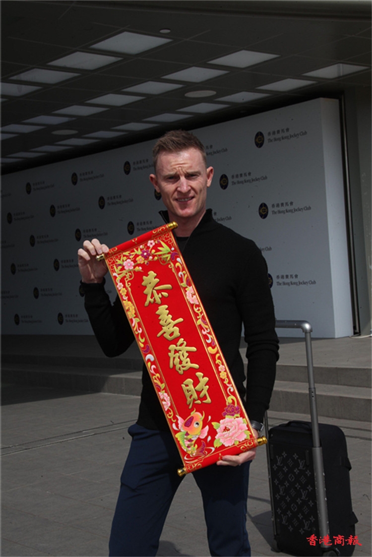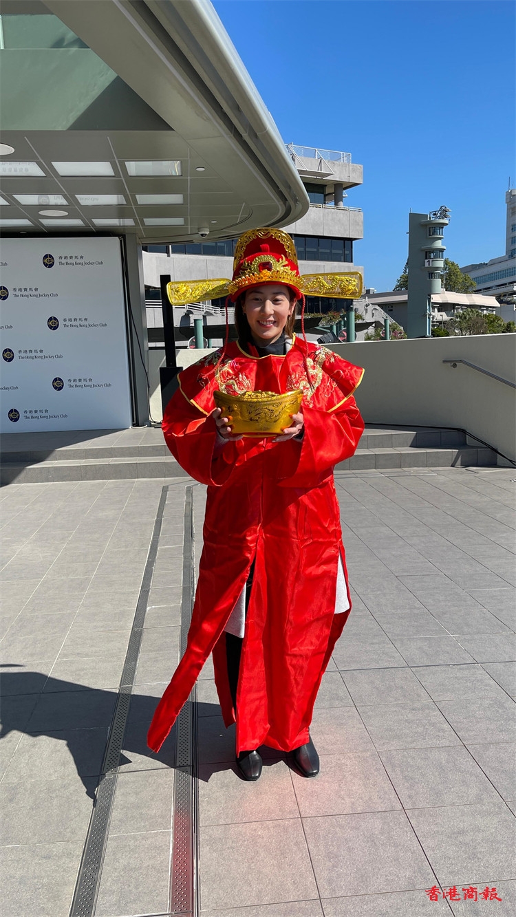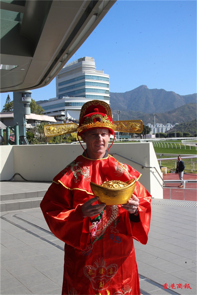 馬會行政總裁應家柏、7屆冠軍騎師潘頓、女見習騎師黃寶妮以及練馬師姚本輝在賀歲馬前齊來拜年。應家柏祝大家「龍馬精神」;姚本輝祝大家「財源廣進」;潘頓、黃寶妮同祝大家「恭喜發財」,兩人更是化身財神,向大家大派好運。