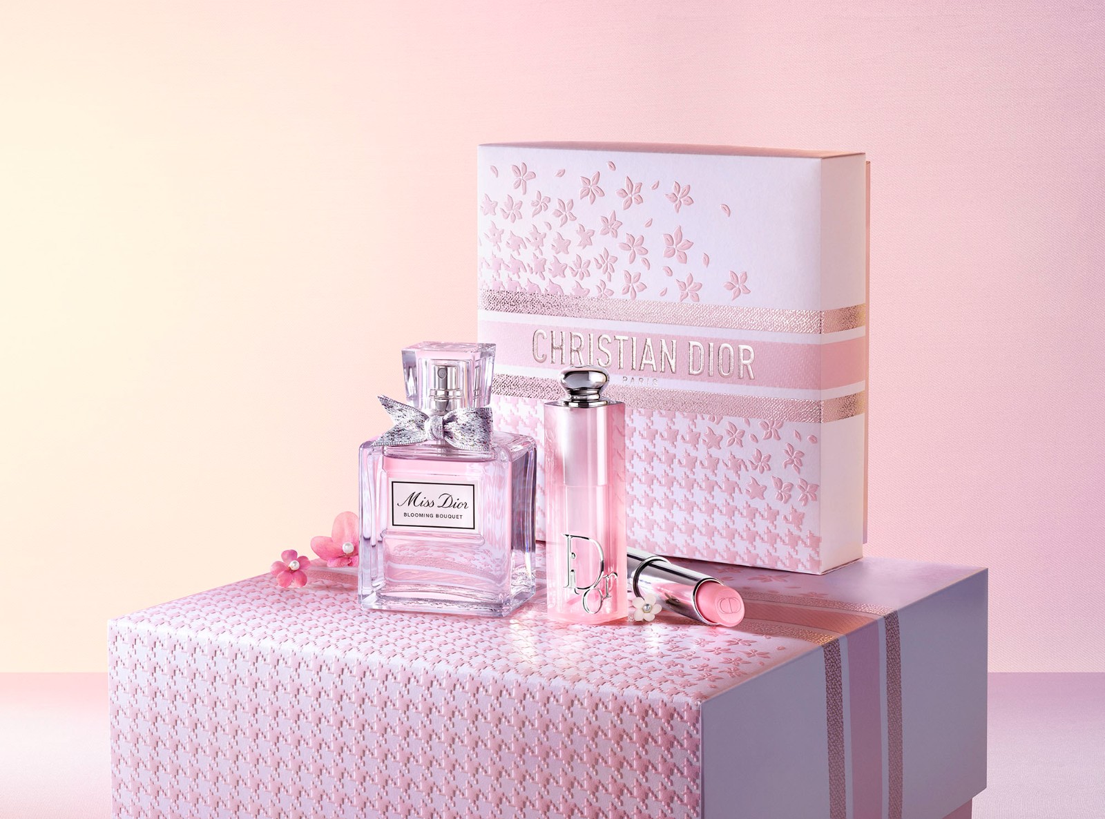 Dior推出情人節珍藏版的高級訂製時尚套裝,內藏Blooming Bouquet淡香薰50ml與誘惑煥彩潤唇膏001 Pink色調。禮盒飾上化身為精緻花朵和花瓣的粉紅色千鳥格圖騰。淡香薰猶如簇擁的鮮花,散發清新柔和的香調,配方核心傾注了大馬士革玫瑰和牡丹芳香,並輕裹在白麝香的柔和氣息中。誘惑煥彩潤唇膏能與唇部的酸鹼值產生反應,煥發個人化唇色,以清新瑰麗的基調提升櫻唇光澤。