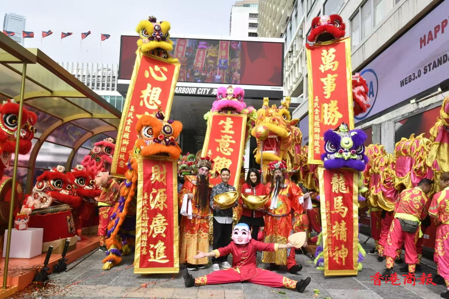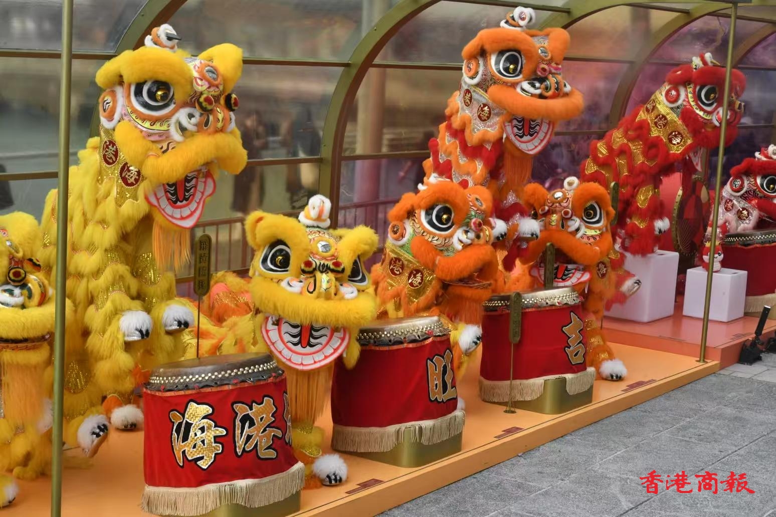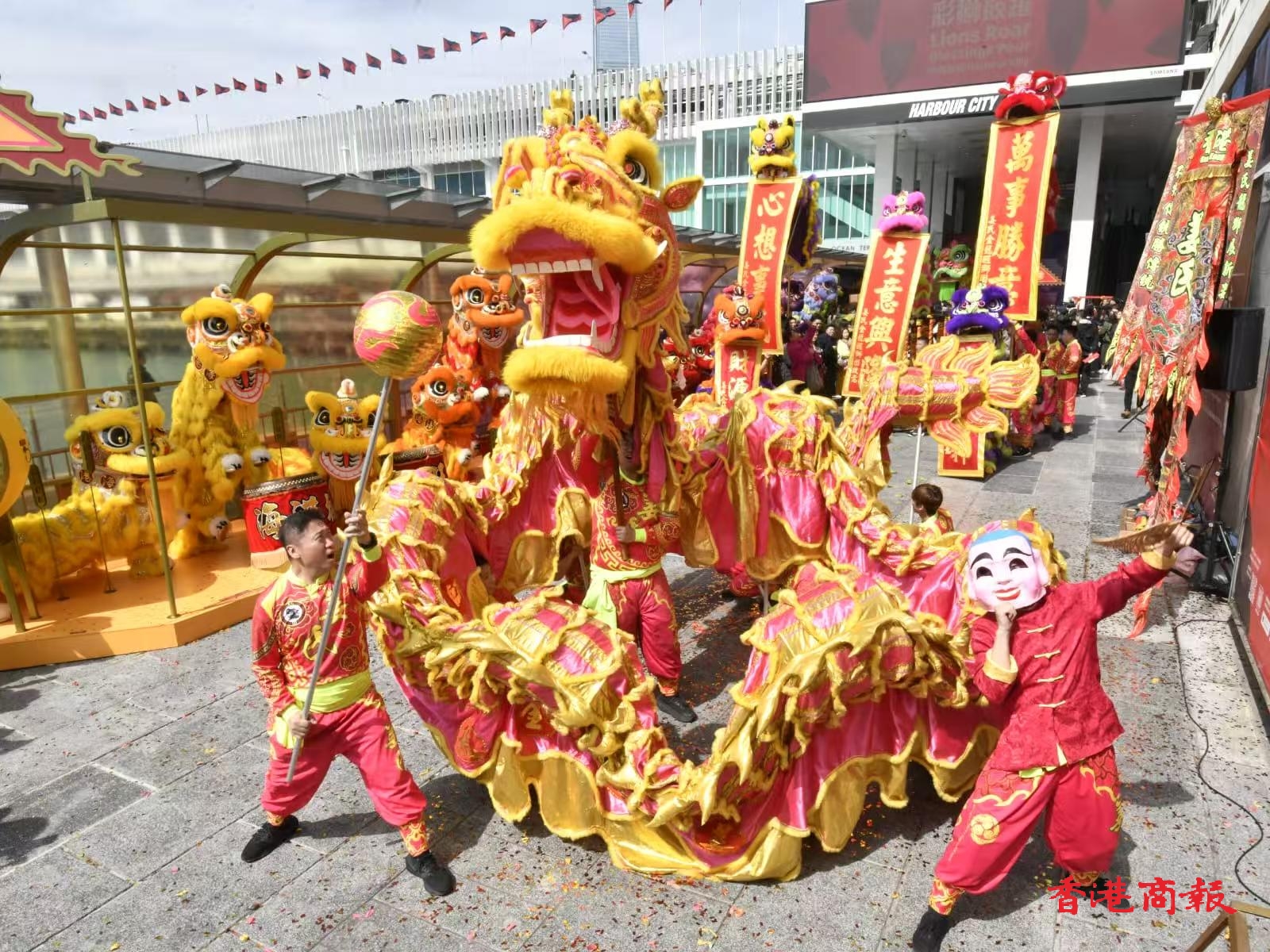 海港城今年與姜氏金龍醒獅團負責人姜偉池(三姜)的「獅王無用」品牌及著名玄學風水專家李丞責攜手合作,於1月11日至2月16日帶來「彩獅鼓躍@海港城」農曆新年布置。