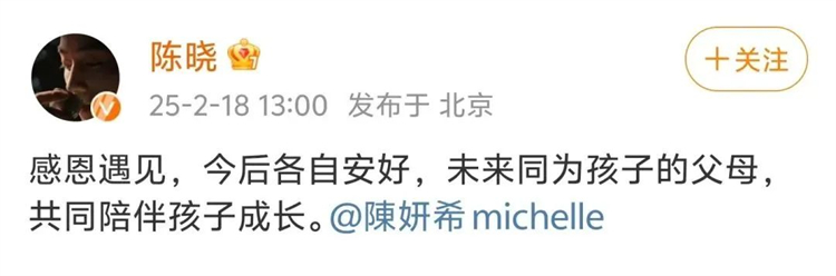 18日中午,演員陳曉和陳妍希官宣離婚。