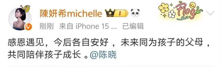 兩人發布微博:「感恩遇見,今後各自安好,未來同為孩子的父母,共同陪伴孩子成長。」