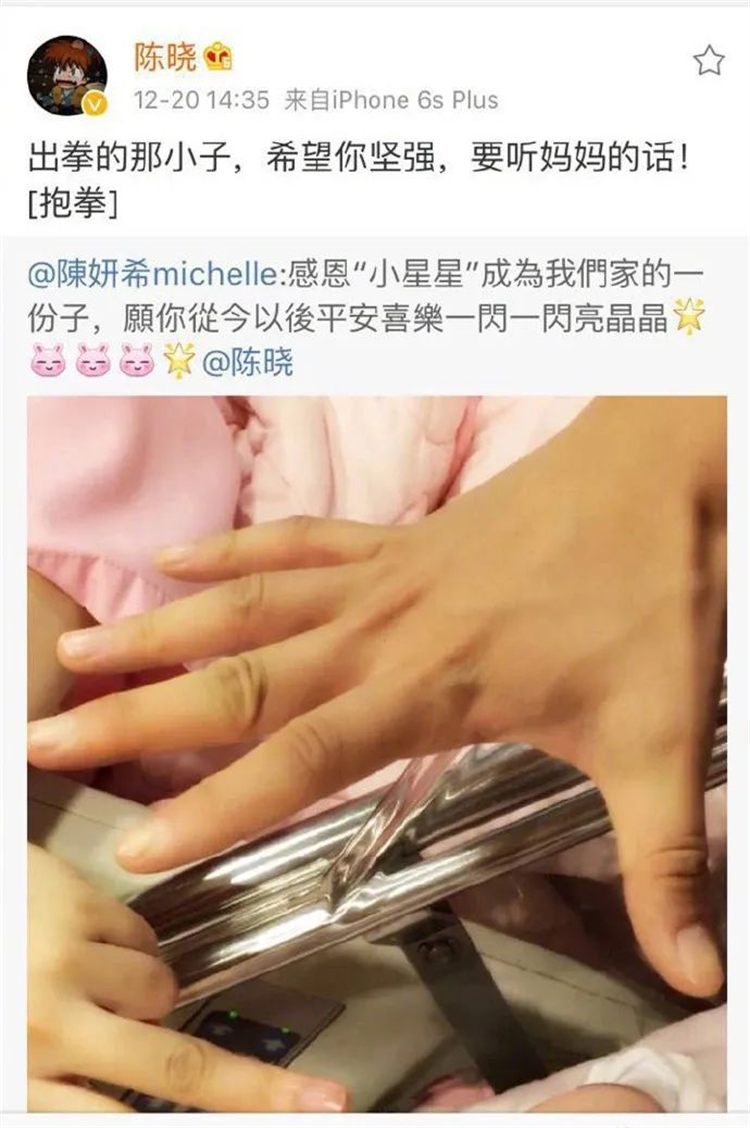 2016年7月5日,陳曉和陳妍希在合肥領證;7月19日在北京舉行婚禮;同年12月20日,陳曉和陳妍希的兒子「小星星」出生。