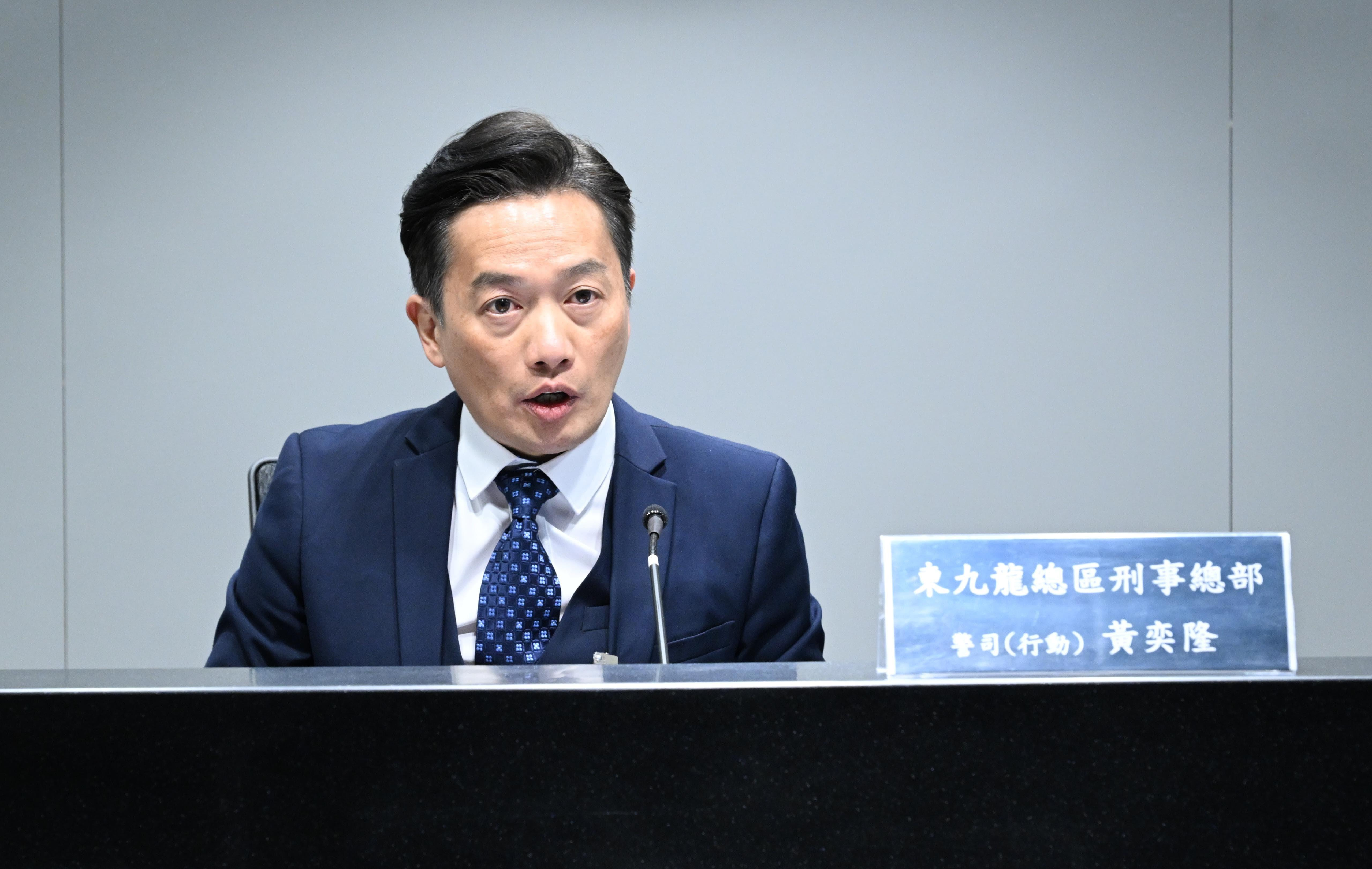 (左起)文化體育及旅遊局體育專員蔡健斌、東九龍總區刑事部警司黃奕隆、東九龍總區刑事部署理總督察劉啟彥。