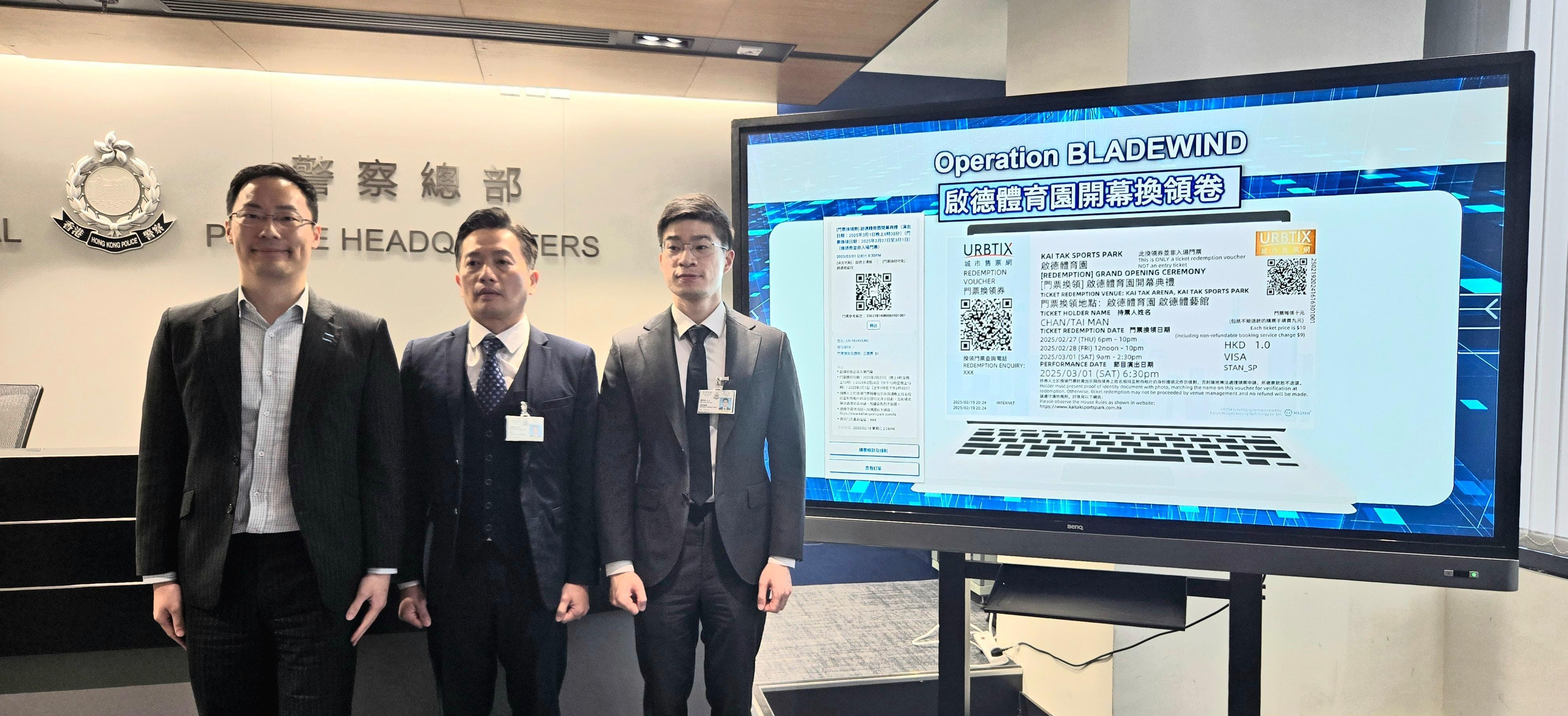啟德體育園本周六(3月1日)舉行開幕典禮,3男女涉嫌在網上放售門票企圖詐騙被捕。涉案人士涉嫌在網上出售電子換領券,售價高於原價,其中有人甚至並未購得換領券,存心詐騙市民。文體旅遊局體育專員蔡健斌提醒市民,持有電子換領券無法直接入場,需換領實體門票方可進場觀看開幕禮,而實體門票可以轉贈給家人使用。